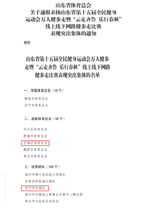 任城区省级健步走赛事再创佳绩,两项佳绩彰显全民健身硬实力