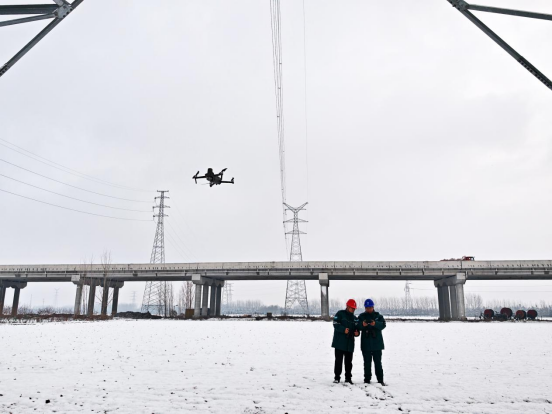 此次巡视聚焦“三跨”(跨越铁路、高速公路、重要输电通道)关键区段,将防覆冰、防舞动作为核心任务。针对大雪后导线、绝缘子易覆冰结冰的风险点,输电运检人员充分运用无人机巡检技术,对线路设备开展近距离、全方位勘查。通过无人机搭载的高清摄像头,精准捕捉导线覆冰厚度、绝缘子积冰形态等关键数据,为判断设备运行状态提供科学依据,从源头遏制覆冰引发的线路冰闪、舞动跳闸故障。