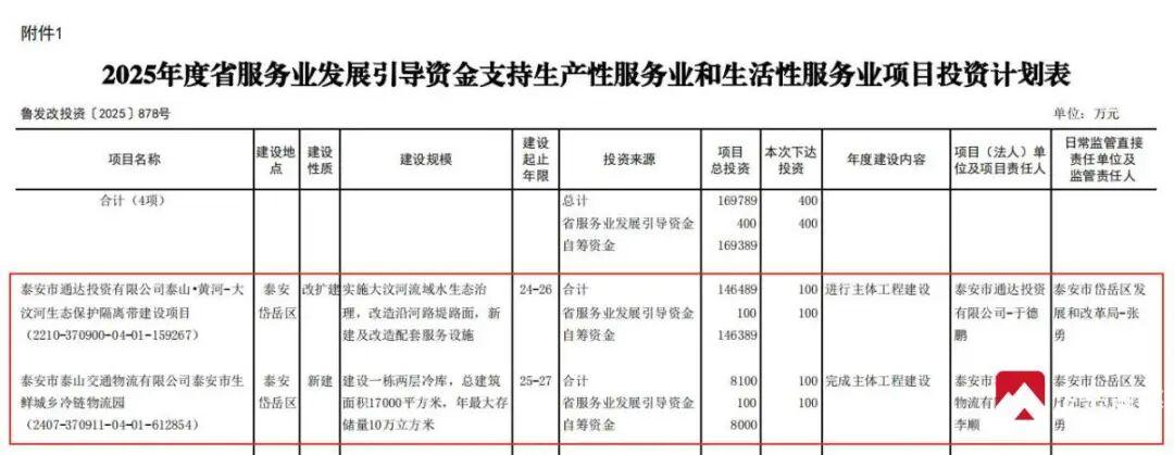 近日,泰安市岱岳区重点谋划的泰山·黄河——大汶河生态保护隔离带建设、泰安市生鲜城乡冷链物流园两个项目成功入选2025年度省服务业发展引导资金支持生产性服务业和生活性服务业项目投资计划,共获批省服务业发展引导资金200万元,项目个数和金额均占全市50%,标志着岱岳区在推动现代服务业扩规提质方面取得新突破。