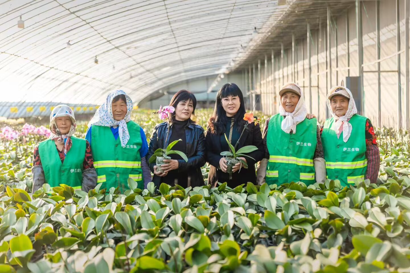 就在这样一片贫瘠的土地上,魏丽开启了她的“造绿”事业。依托“党支部+公司+农户”的发展模式,魏丽带领团队通过土壤回填、种植耐盐花草苗木等方法,让昔日的贫瘠地渐渐焕发生机:明日叶、欧石竹郁郁葱葱,蝴蝶兰含苞待放。经过多年深耕,企业已实现年产花卉、蔬菜种苗8000多万株,精品盆花2000多万盆以上,年产值超1000万元,带动30余名村民就近务工,人均年增收2.5万至5万元,实现了产业发展与富民增收的双赢。