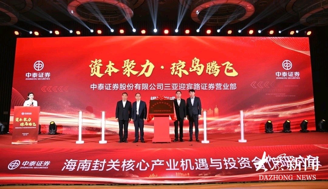 12月18日,海南自贸港正式启动全岛封关之际,中泰证券“资本聚力・琼岛腾飞—海南封关核心产业机遇与投资合作研讨会”在三亚成功举办,中泰证券三亚迎宾路证券营业部同日揭牌开业。
