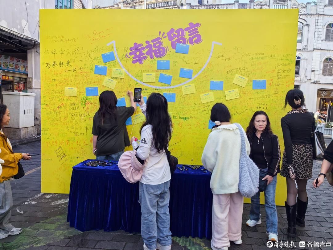 在骑楼老街展出的“幸福照相馆·首日‘封’主题摄影绘画展”,呈现了海南自贸港建设中的崭新气象与人民实实在在的获得感与幸福感,更是吸引了不少游客驻足观看,不仅如此,很多游客被这场视觉盛宴所感染,纷纷在幸福留言板上写下自己的祝福和愿望,并合影留念。“我是外地人,本来对‘封关’没有什么概念,但是从落地海口的那一刻起,看着相关宣传,加上消费享受到的实惠,觉得‘封关’真的关乎每一个人。”河北游客李女士表示。