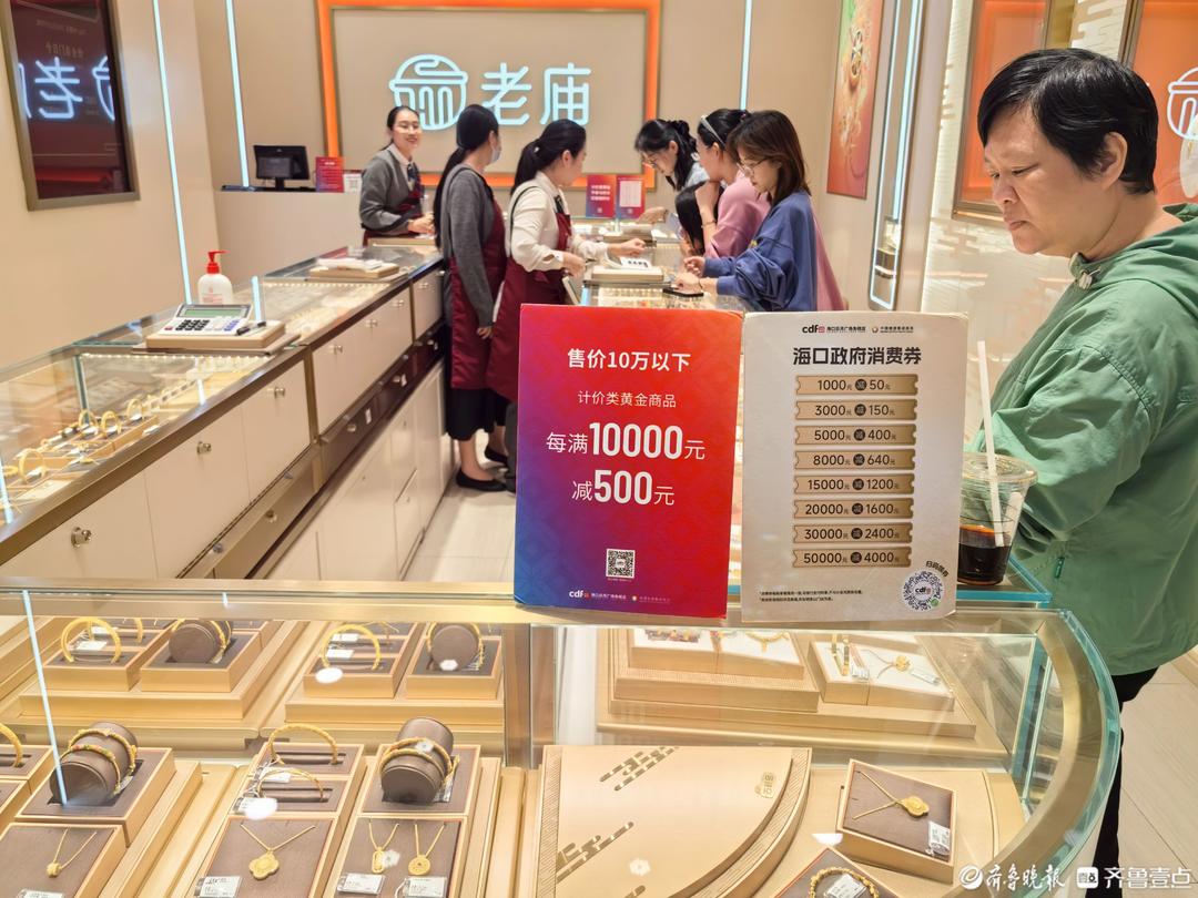 黄金饰品专柜前人流不断,成为消费热潮中的一大亮点。“买得越多省得越多。”某黄金品牌专柜的工作人员手拿计算器为记者算了一笔账:“以40克的金饰为例,我们店今日克价1184元,内地价是1353元,每克便宜169元,40克就便宜了6760元;我们店的优惠是满10000元减500元,40克的话40000多元,可以减去2000元,现在加起来已经省了8000多元了。如果您能抢到政府的消费券,还能便宜好几千钱。”