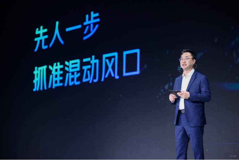 福田汽车欧曼营销公司总经理刘刚发布全新一代欧曼银河混动重卡,基于超级混动3.0智能平台化架构打造,涵盖插电混、非插电混两种动力类型,油电混和气电混两种能源组合,覆盖快递、快运、煤炭、砂石料等全细分场景,以超过50项行业领先技术,树立了高效运输新标杆。