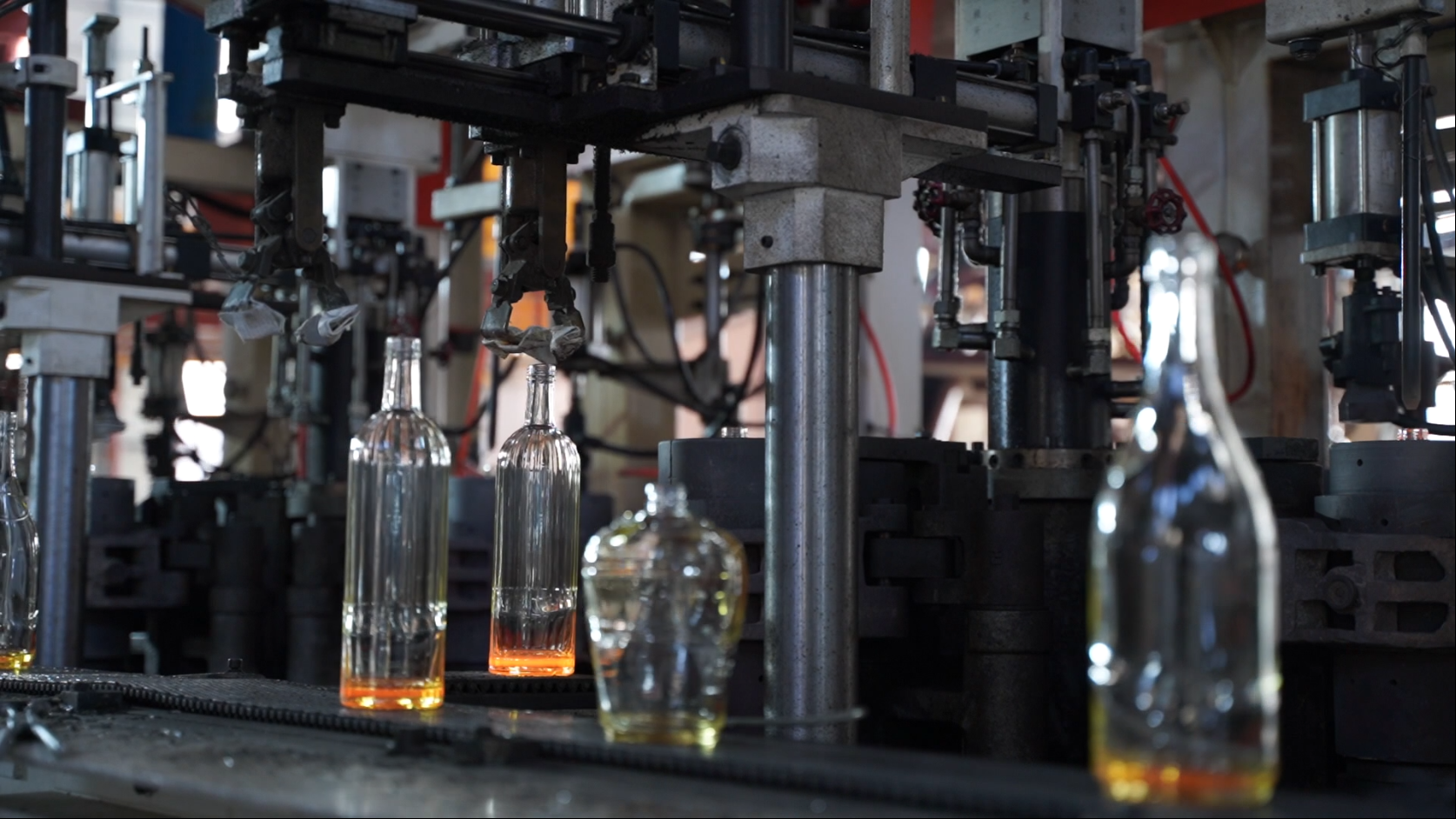 寒意渐浓,位于郓城县的山东晶玻集团有限公司制瓶车间,窑炉内烈焰灼灼。玻璃坯料在高温下熔化,经熔制成型等工序后,初凝的玻璃制品泛着暗红火光,源源不断涌向生产线。