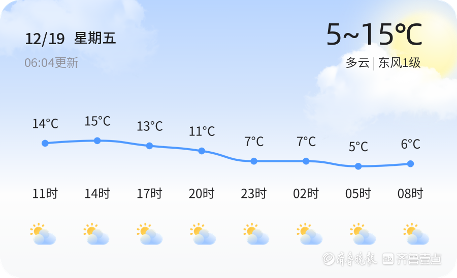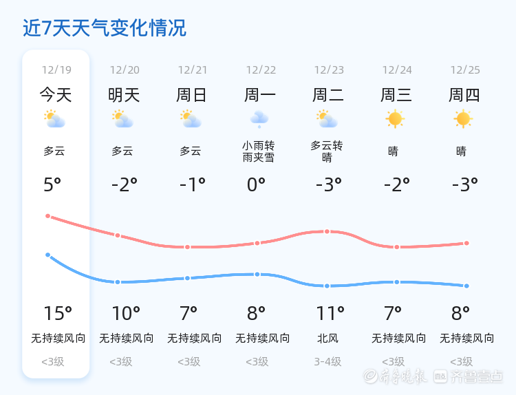 济宁今日天气多云为主,未来三天气温波动明显AI写稿 2025-12-19 06:30:17温馨提示未来三天济宁市气温变化较大,市民需注意防寒保暖,尤其是老年人和儿童等易感人群。雨雪天气可能导致道路湿滑,建议出行时减速慢行,确保安全。同时,空气质量方面,今日PM2.5指数较高,敏感人群应减少外出,外出时佩戴口罩。责任编辑:AI小壹