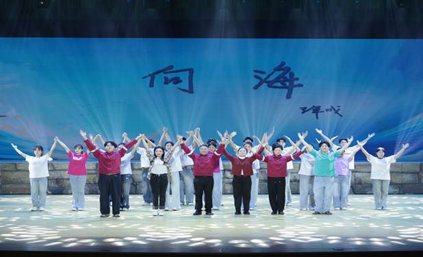 《向海》根据中国工程院院士、齐鲁工业大学(山东省科学院)名誉校(院)长、海洋学部王军成研究员及其团队的真实事迹改编,讲述了主人公矢志报国、潜心科研,四十年如一日扎根海洋浮标科研教学一线的感人故事。该剧谋划伊始便以打造国内高校顶尖音乐剧标准为目标,汇聚了国内一线音乐剧编导制作资源。山东省戏剧家协会副主席高志娟担任编剧,中国舞蹈家协会会员、山东省舞蹈家协会主席团委员刘忠担任导演,中国流行音乐家协会会员、校(院)音乐教研室教师田率担任作曲。坚持“学生演老师、学生演学长”的原则,剧中全部角色均由在校师生出演。精华版于2023年12月完成首演,2025年,在原有版本坚实基础和演出经验积累上,剧组精心策划、刻苦排练,终将全剧版倾力打造完成。演出现场,演员表演细腻、歌曲昂扬奋进又感人至深,观众无不为剧中人物崇高的科学家和教育家精神而感动落泪,首演取得圆满成功。