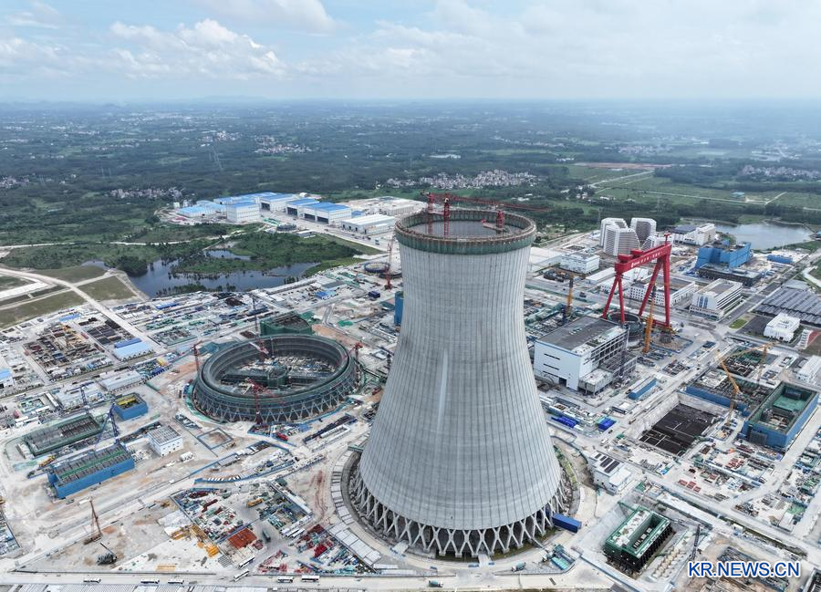 중국 국가전력투자그룹 광둥(廣東) 롄장(廉江)원자력발전소 프로젝트 공사 현장을 지난 9월 17일 드론으로 담았다. (사진/신화통신)