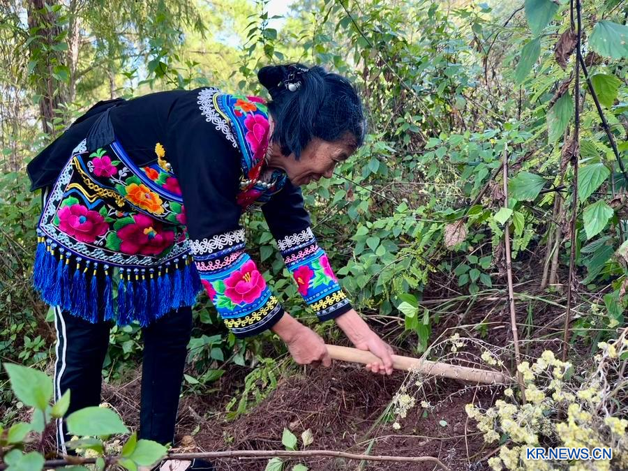 윈난(雲南)성 융런(永仁)현 중허(中和)촌 주민이 트러플을 채집하고 있다. (사진/신화통신)