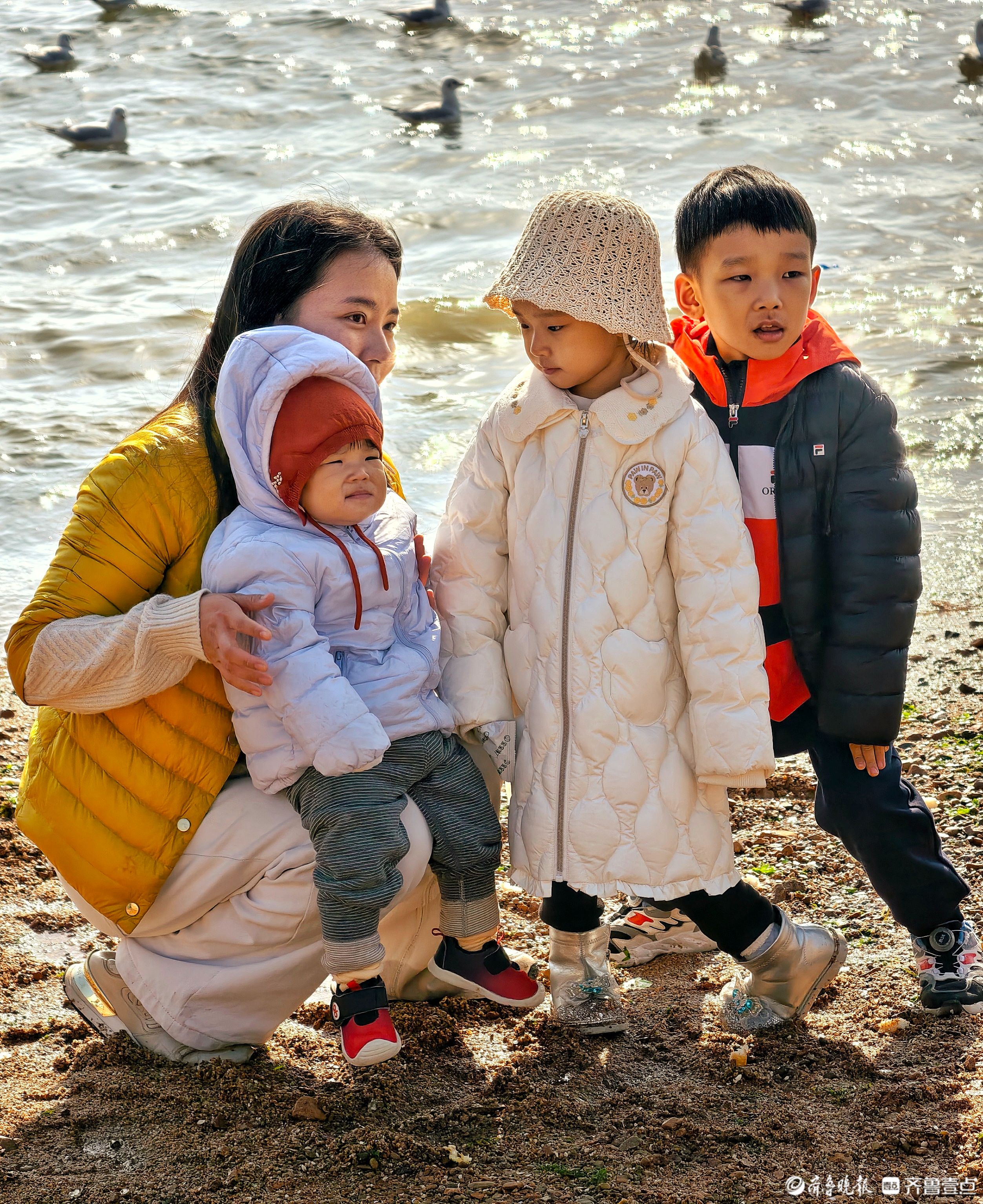 青岛栈桥沙滩,一起与海鸥合个影