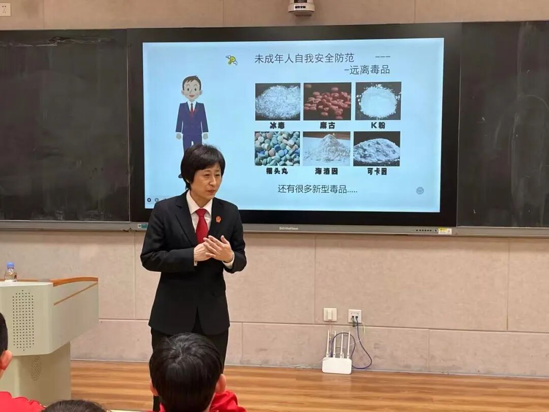 在涉及未成年人犯罪预防环节,王爱青详细剖析了不良行为与严重不良行为乃至违法犯罪之间的界限与联系,结合典型案例和数据,警示同学们要明辨是非,远离犯罪。针对校园欺凌、网络安全、性侵害防范等突出问题,法官们不仅传授了具体的识别与应对技巧,更通过情景假设引导同学们学会运用法律武器保护自己,提升自护意识和能力。