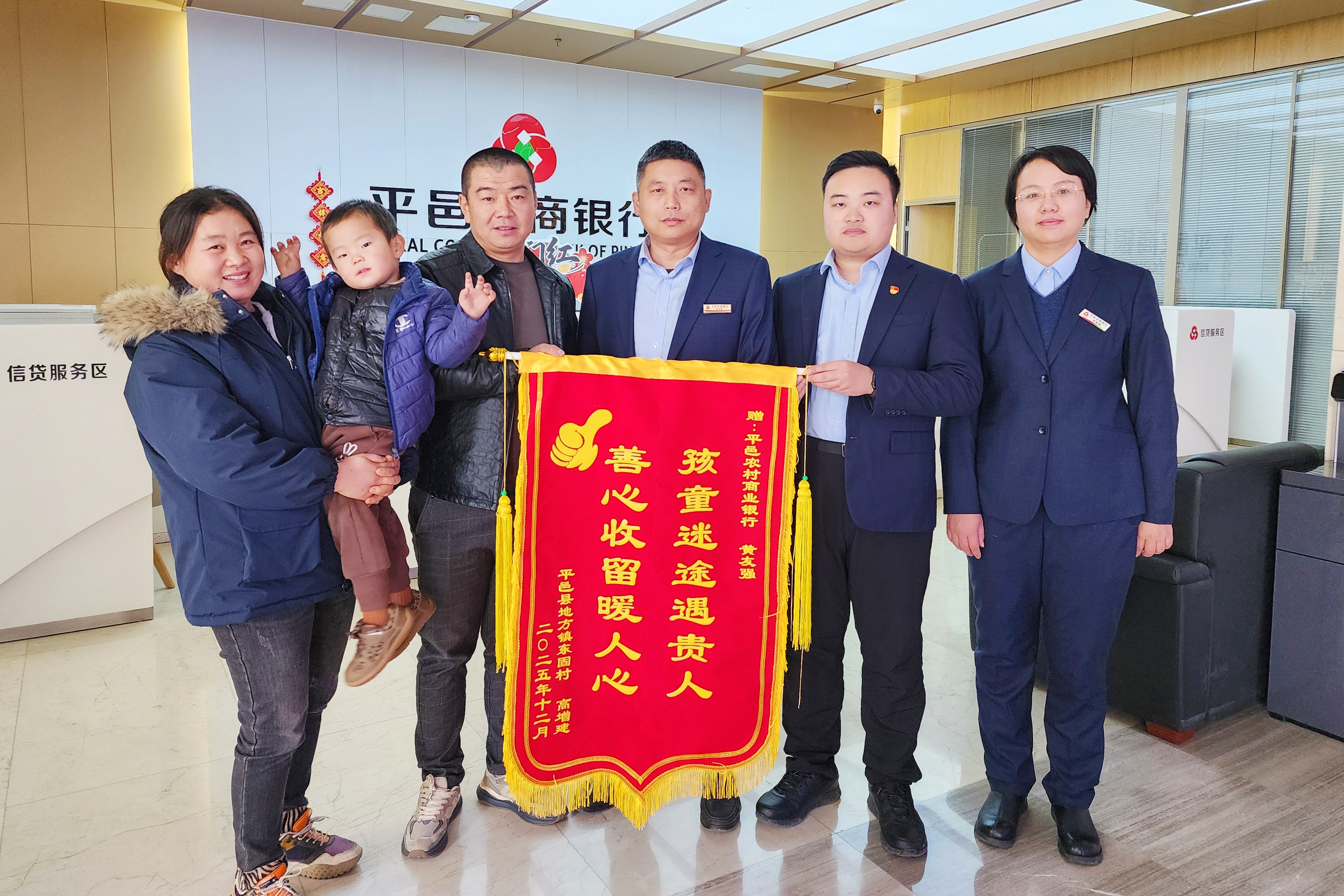 近日,平邑农商银行庞庄支行客户经理黄友强与李长政两位同志,在周末开展实地贷后检查途中,暖心救助一名走失男童,用实际行动彰显了农商行人的责任与担当,赢得了孩子家长及周边群众的一致称赞。