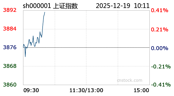 AI小壹12月19日讯 沪市小幅上涨,最高触及3891.35点,最低下探3871.78点,振幅0.39%。截至10:00,上证指数高开3891.35点,涨幅0.39%,成交额2730.65亿元,成交量1.79亿;深证成指报13145.68点,最高13145.68点,最低13070.73点,涨幅0.7%,成交额3760.81亿元,成交量2.43亿创业板报3131.49点,最高3138.44点,最低3112.03点,涨幅0.79%,成交额1745.83亿元,成交量6986.32万