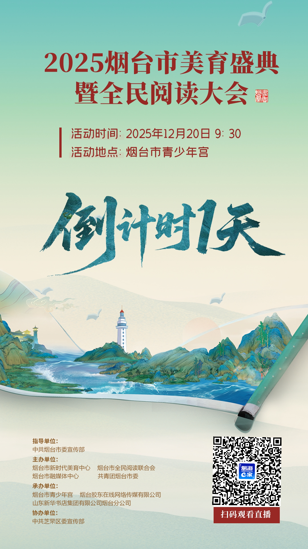 当黄海与渤海的涛声遇见书香雅韵,当美育之光照亮港城肌理,烟台正以一场全民瞩目的文化盛会,叩响文明新征程的大门。12月20日(周六)上午9:30,由烟台市新时代美育中心、烟台市全民阅读联合会、烟台市融媒体中心、共青团烟台市委主办,烟台市青少年宫、烟台新华书店、胶东在线网站承办的2025烟台市美育盛典暨全民阅读大会将在烟台市青少年宫盛大启幕,通过云端直播,邀千万观众共同见证烟台文明向上的力量,感受一座城市以文化为翼的进阶之路。