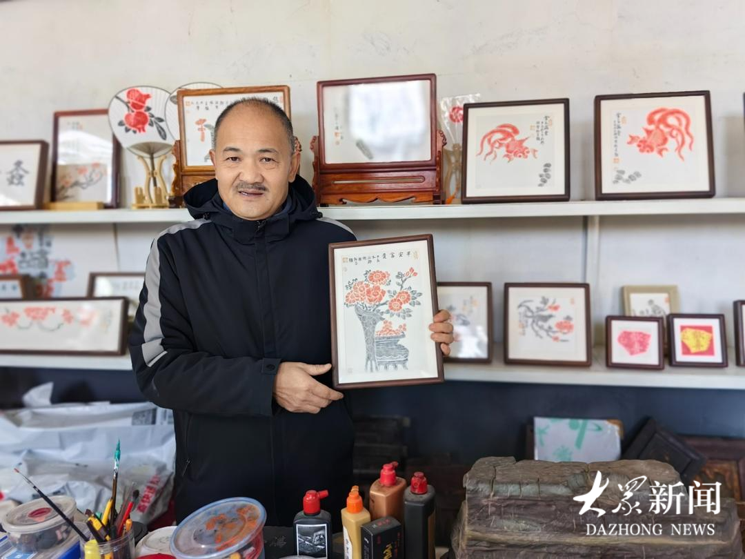 “博物馆收藏的门楣、床楣上都有精美的图案和纹饰,这里面藏着丰富文化、民俗密码,像梅兰竹菊、牡丹、石榴等植物,出现的频率非常高,说明了这些植物自古以来深受人们喜爱,并被赋予美好的寓意。”近年来,胡发科一方面把木雕图案拓印下来,进行保存整理,并联合高校专家进行相关研究;另一方面,他把相关纹饰组合,进行艺术创新,制作特色传拓产品。