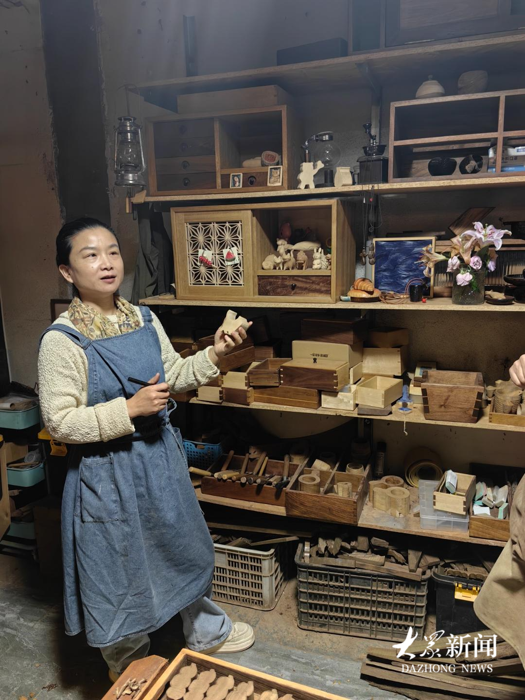 除了从事木雕创作,柏庆霞还负责给同样位于民艺小院的“明立木工坊”设计木雕样品。明立木工坊主要利用木质较软的巴沙木、椴木等,加工儿童木雕木料半成品。