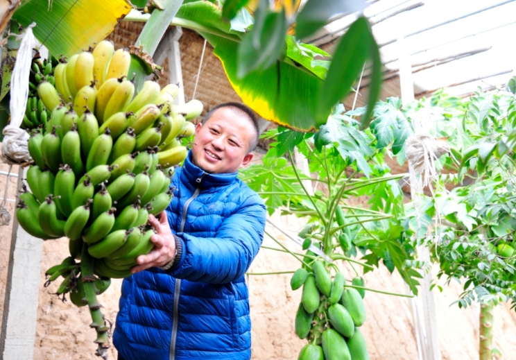 起初,没有成熟模式借鉴,陈红波只能摸着石头过河。为破解南方水果北方“水土不服”的难题,他多次请教省农科院专家,历经3次土壤改良,在0.5米以下土壤加入酸性矿物质,终于让果园土壤变成适合南方水果生长的“家园”。随后,他又投资30万元升级改造园区温室大棚和2个日光温室大棚,量身打造适宜南方作物生长的环境,成功种出火龙果、芭乐等南方特色水果。