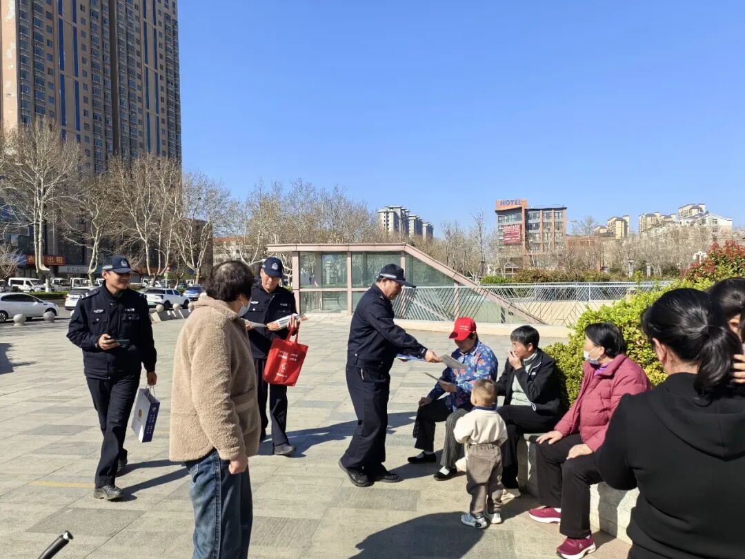 民辅警通过发放宣传彩页等方式
