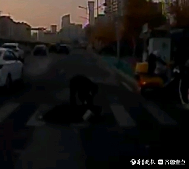 市民骑车在路口摔倒,济南公交司机热心上前搀扶