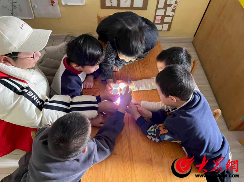 生动的演示点燃了孩子们的参与热情,在志愿者的引导下,孩子们分组操作实验材料,仔细观察“光路”的形成与变化。志愿者还鼓励孩子们描述实验现象,分享自己的发现,在动手实践与表达交流中提升观察能力和语言表达能力。