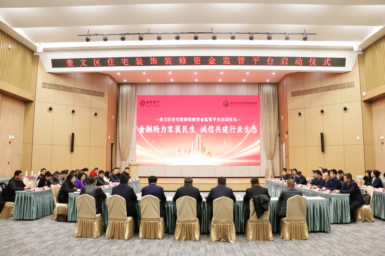 近日,奎文区住宅装饰装修监管平台启动仪式在潍坊市资本中心顺利举行,奎文区相关领导、潍坊银行相关部门负责人、区住宅装饰装修协会及相关家装企业负责人共计约40人参加。