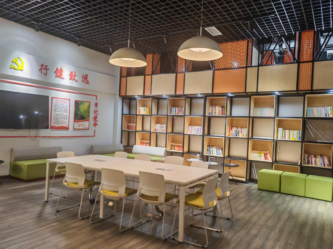 依托邮爱驿站建设,网点在为客户提供老花镜、血压计、轮椅等便民服务的基础上,进一步打造阅读特色区域,区域面积占比网点总面积的30%,分为厅堂部分和阅读大厅部分。厅堂业务等候区设立公众教育服务区域,除图书外,还提供各类金融知识宣传册,方便客户了解到各类理财、反诈等金融知识,让等待办理业务的时光不再焦灼。阅读大厅划分政治、历史、经济、少儿、餐饮、教育、散文等30余种书籍,在册图书达1200余册,优选网点青年骨干人员负责图书日常维护管理。定期举办主题活动,将知识服务延伸至财富管理,通过文化+金融的服务体验,有效提升了客户满意度,年轻客群与知识分子客群占比提高。