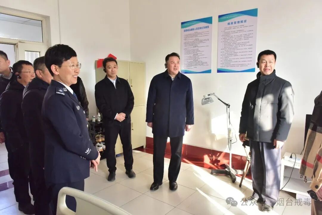 为贯彻落实省司法厅关于做好新精神活性物质成瘾戒治工作部署,学习借鉴先进戒治康复工作经验,凝聚“共建共治”禁吸戒毒工作合力,推动烟台市自愿戒治康复工作高质量发展,12月15日,烟台市司法局党组书记、局长刘文家带领各区市司法局、市公安局、市戒毒所相关领导和负责人,赴山东省戒毒监测治疗所考察学习自愿戒治康复工作。省戒毒管理局政委杜章陪同考察。