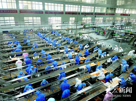 地方镇的果品粗加工点,基本上是为罐头加工企业做前期服务的,桃子开瓣、山楂去核、橘子剥皮等工序,往往要占用很大的地方,企业便将这道工序下放到各村的粗加工点。这些活技术含量不高,对体力要求低,很适合还有一定劳动能力的老人来干。
