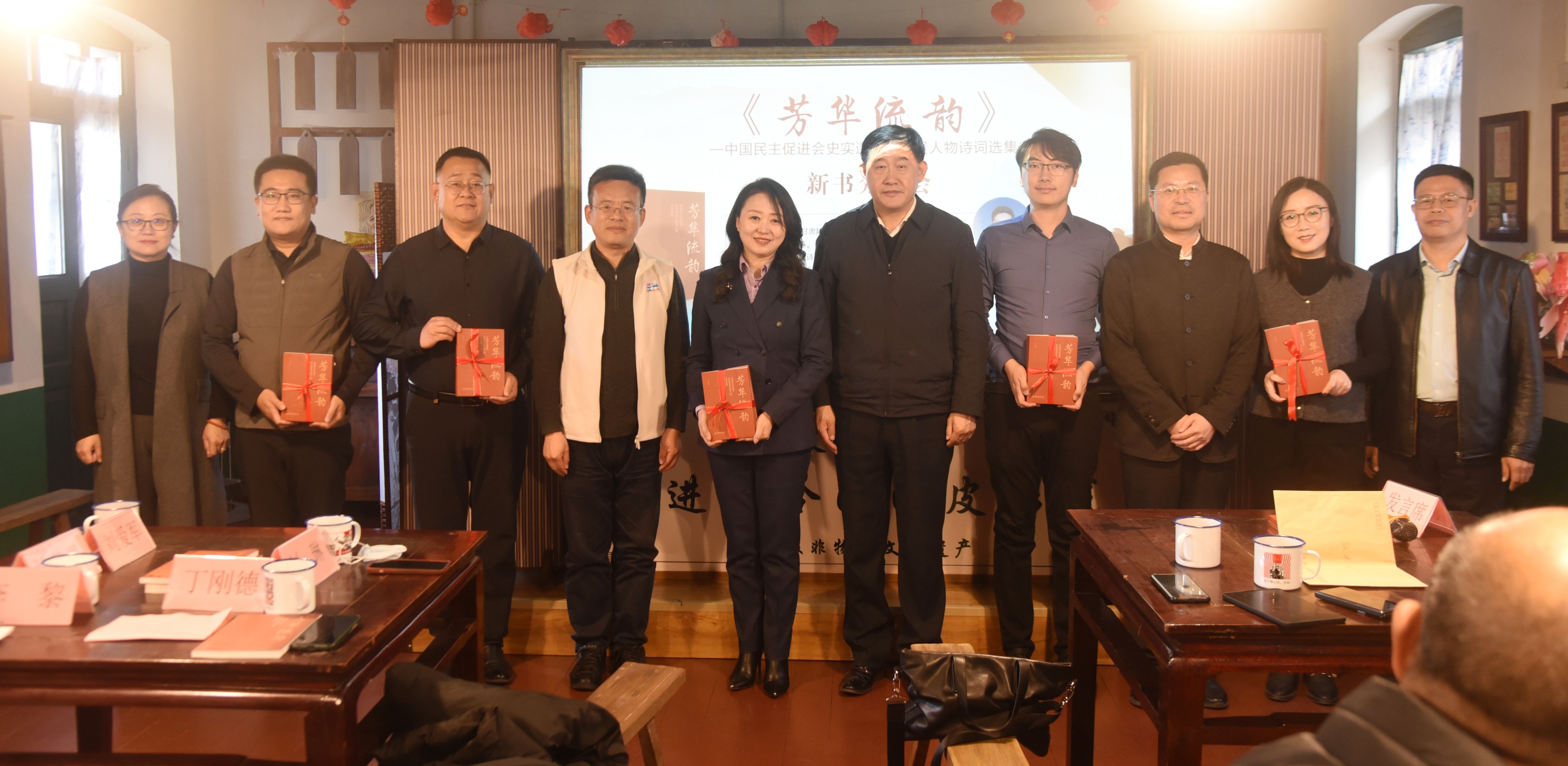 读书会在赠书仪式中拉开帷幕,李黎、丁刚德、刘琳、杜盘恩、张洪涛共同向与会委员、会员代表赠送了民进主题诗词集《芳华流韵》。该书以诗词形式生动记述了民进八十年来与中国共产党同心同行的历史足迹。