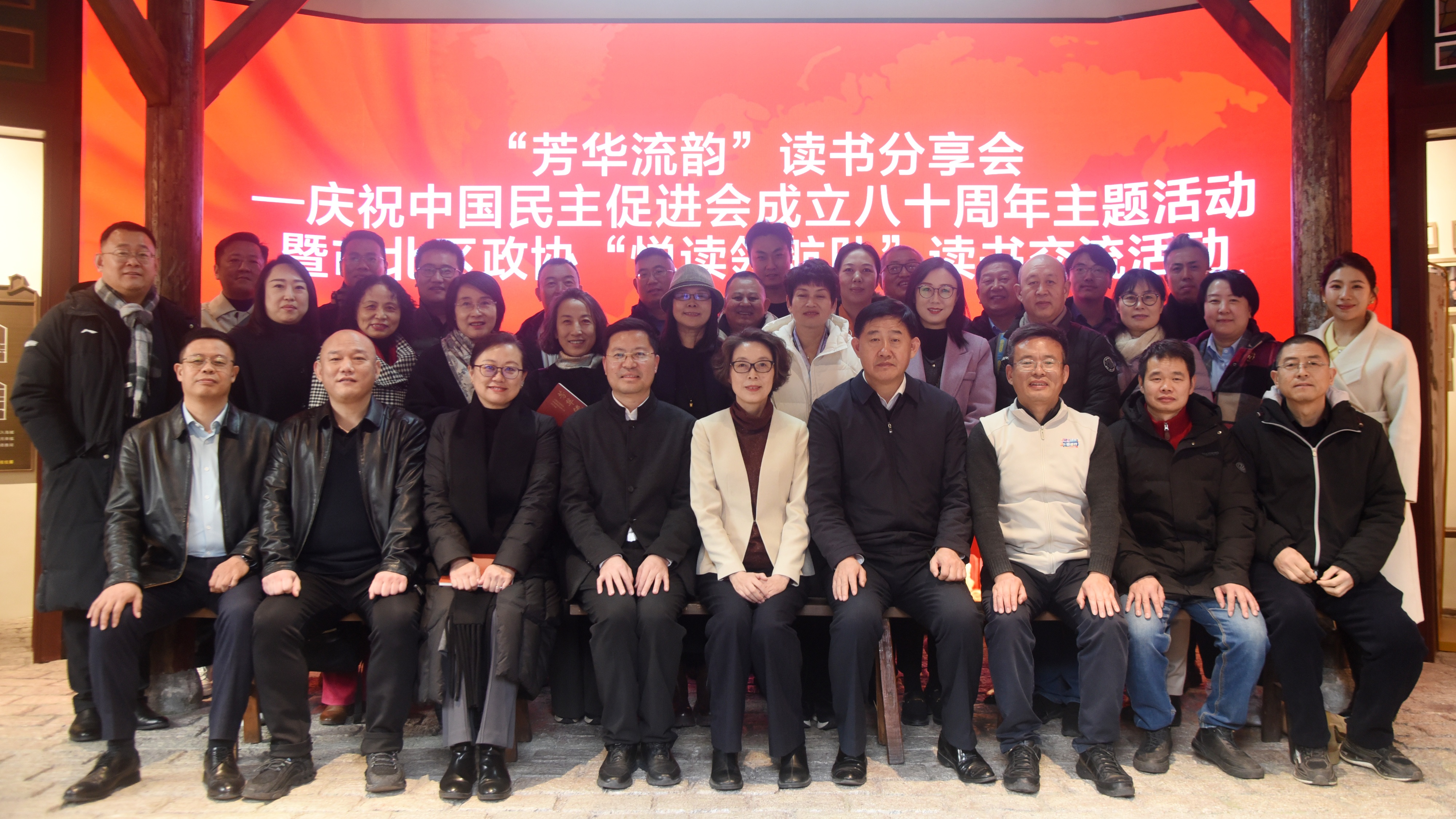 在读书分享环节,六位来自不同领域的代表先后发言。民进市北区基层委副主委张洪涛以《在正道上行》表达坚守初心的信念;教育界委员顾建宏以《冬有书香不觉寒》为题分享阅读感悟;企业家代表王礴畅谈文化传承;律师张晓宁以《读民进史诗词,忆八秩初心》为题探讨责任担当;区政协“悦读领航队”队长门国锋则从《两千年间》的历史阅读中引申思考;民进全国优秀会员、出版界代表邓志科介绍了《芳华流韵》的出版历程。分享内容紧扣主题,视角多元,展现了阅读带来的思想启迪与精神共鸣。