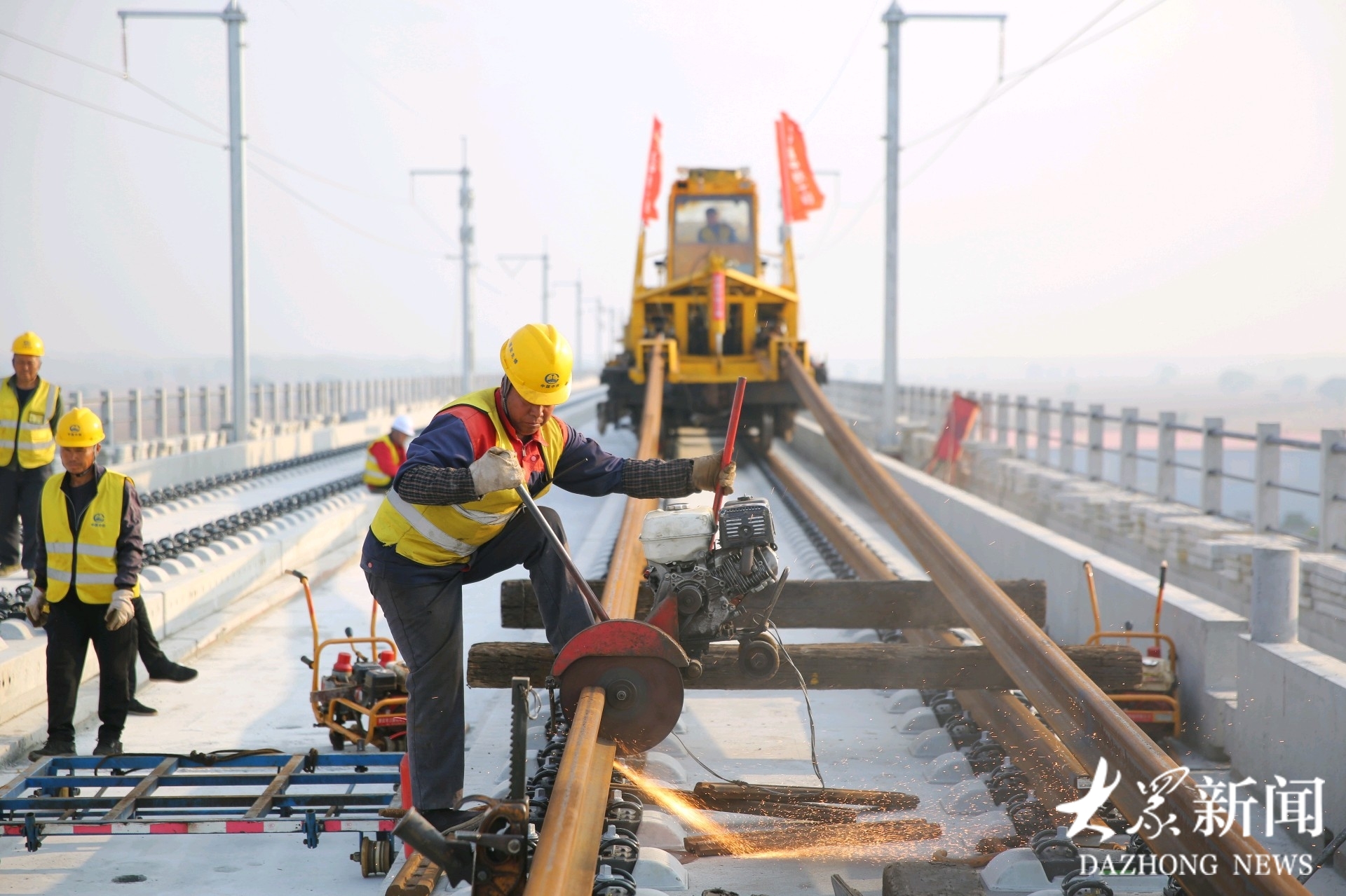 记者从中国铁路北京局集团有限公司(以下简称:国铁北京局)获悉,12月19日上午,在位于河北省邢台市清河县内的京港高铁雄商段铺轨施工现场,随着建设者将最后一对500米长钢轨平稳铺设就位,标志着京港高铁雄商段正线铺轨顺利完成,为线路按期开通运营奠定了坚实基础。