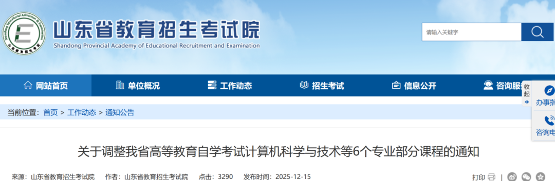 注意啦!山东省高等教育自学考试计算机科学与技术等6个专业部分课程将进行调整。2026年12月1日后,考生须按调整后的课程报考。一起来看看吧↓↓↓