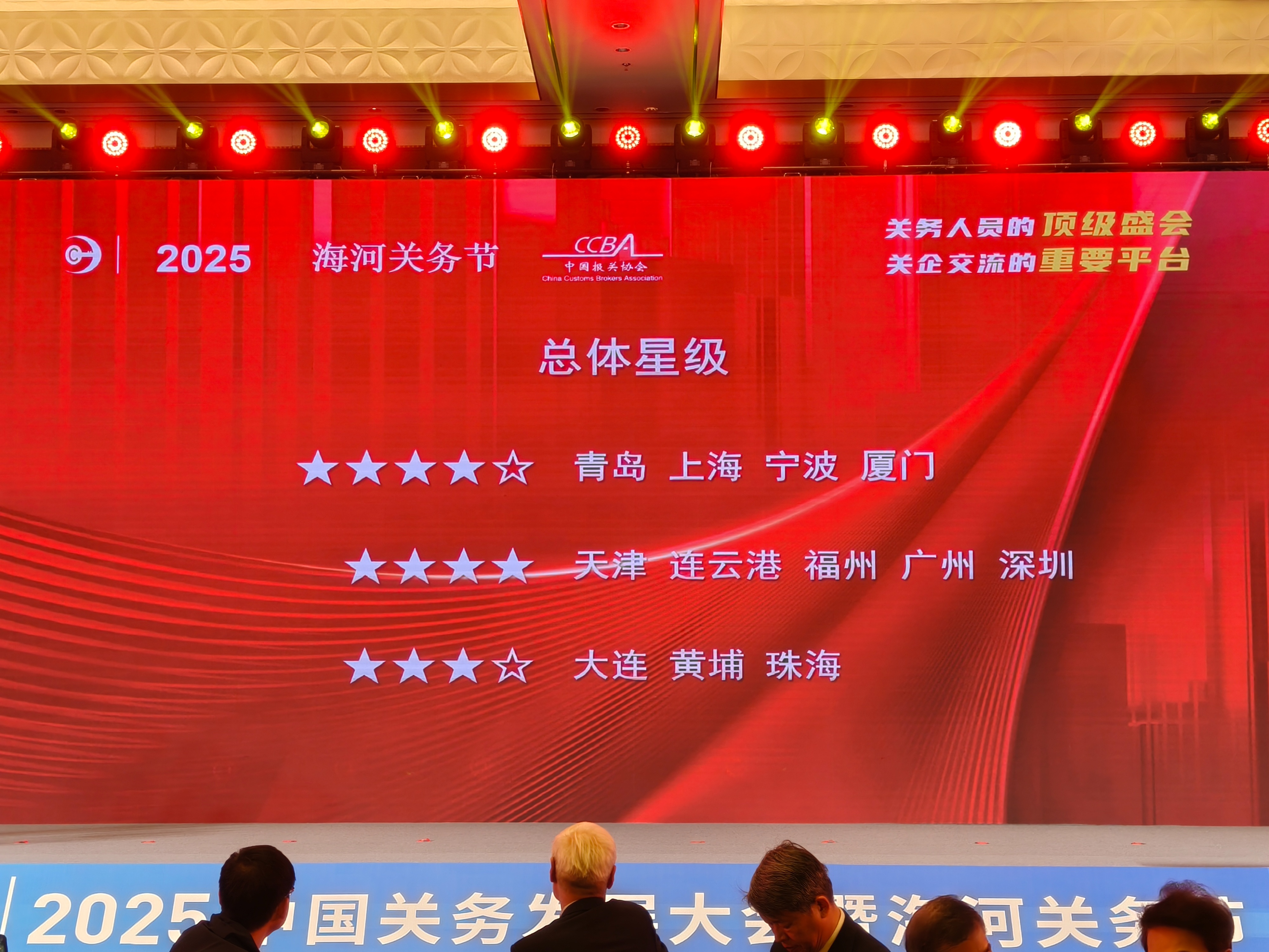 12月18日,中国报关协会、北京睿库贸易安全及便利化研究中心在2025年中国关务发展大会暨海河关务节上发布了“海运口岸集装箱货物跨境贸易营商环境测评”结果,青岛蝉联“最高星级”,这是青岛市连续5年以综合得分第一名的成绩获评最优等次。