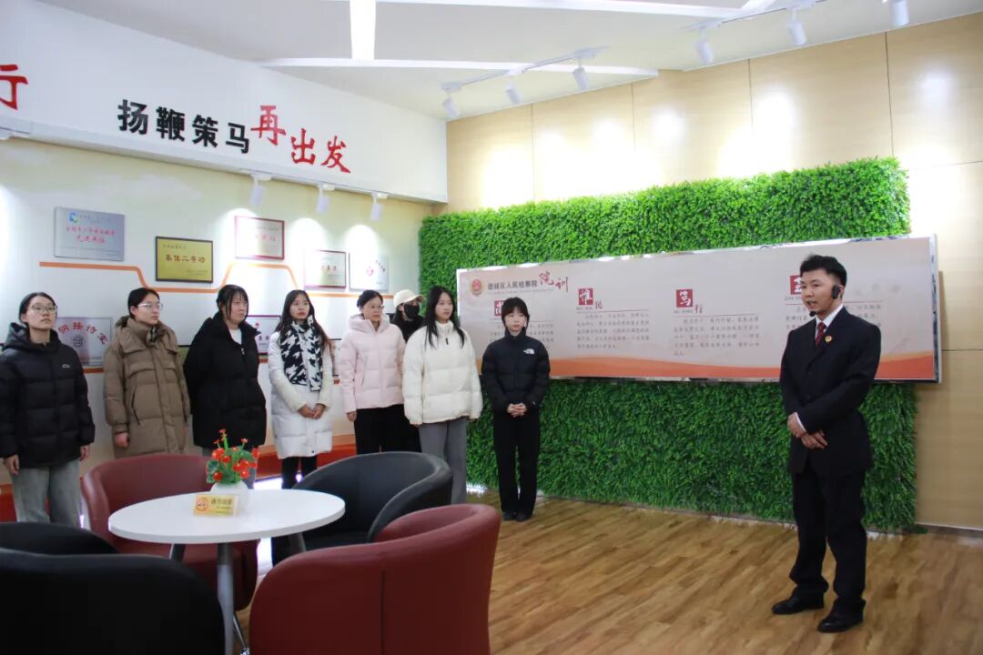 活动伊始,学院师生一行参观了该院办案工作区、检察文化长廊、党员政治生活馆、“青检苑”活动室与院史荣誉室,全面了解检察文化建设、党建工作、“检润德城”等系列特色工作,加深了对德城检察的整体发展和党建创新实践的认识。