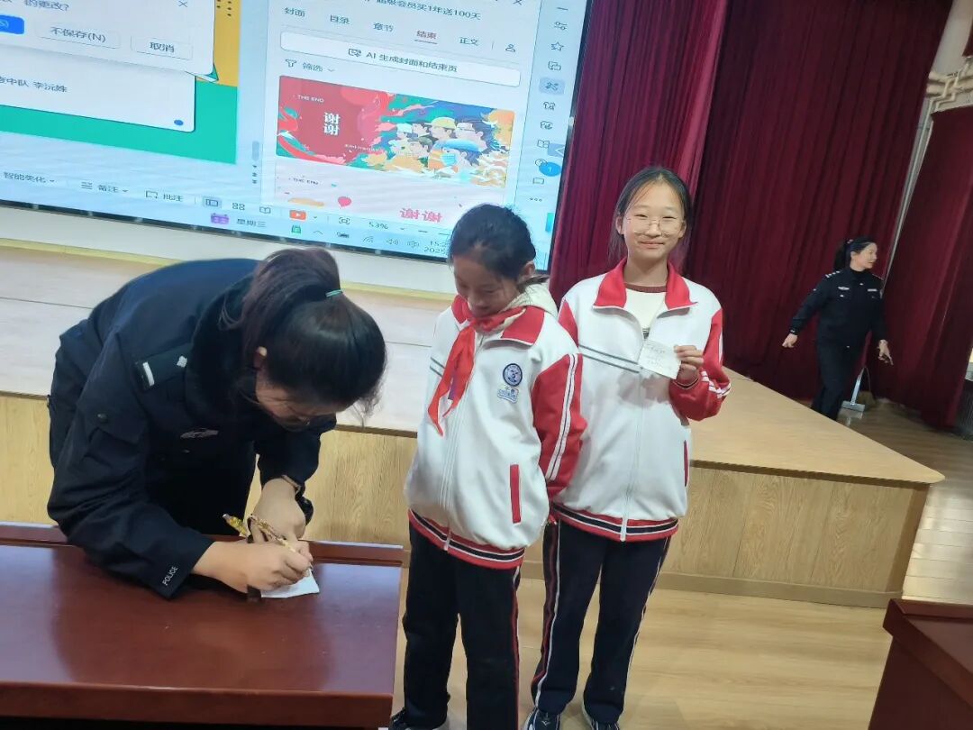此次反诈进校园活动,不仅筑牢了校园安全防线,更在青少年心中播撒了法治与梦想的种子,实现了良好的社会宣传效果。活动结束后,几位学生化身“警迷”索要民警签名并立志考取警校,愿意在未来与民警一起并肩作战,守护人民平安。