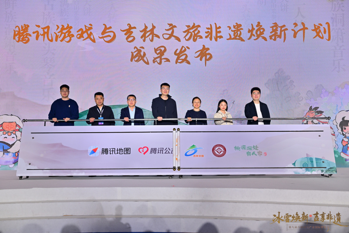 在成果发布环节,举行了“腾讯游戏与吉林文旅非遗焕新计划”合作成果发布与启动仪式。腾讯游戏代表详细介绍了《桃源深处有人家》游戏吉林非遗主题版本的创作理念,以及全国首张“非遗吉林·冰雪好趣处”公益地图的联动价值。腾讯集团代表同期发布了“爱心传暖 教室圆梦”公益项目具体规划。随后,在文化和旅游部非物质文化遗产司、吉林省文化和旅游厅、相关协会及合作企业代表的共同见证下,“吉林文旅非遗焕新计划”正式启动,进一步促进了跨地域非遗的交流与互鉴。