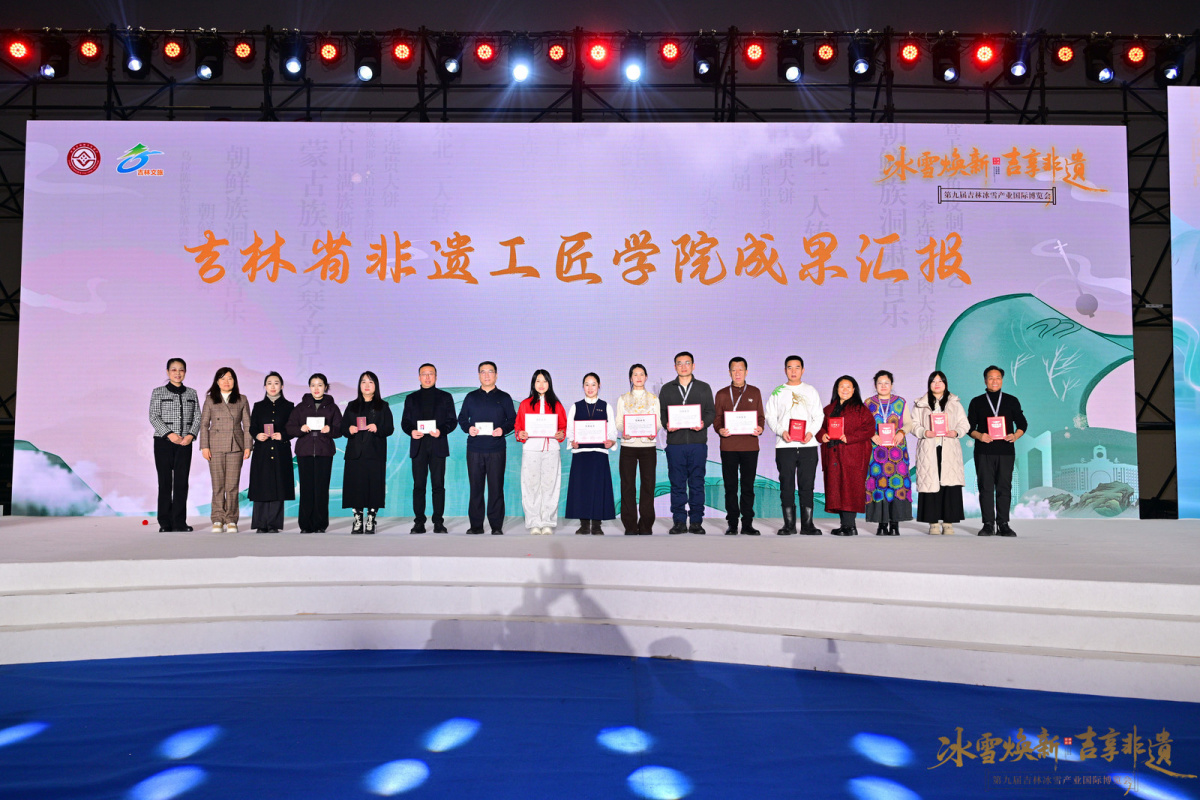 人才是非遗传承的关键。活动期间,吉林非遗工匠学院介绍了“五位一体”协同育人模式的成果,并为2025年度完成培训的学员代表颁发了结业证书,为非遗传承注入了新的专业力量。