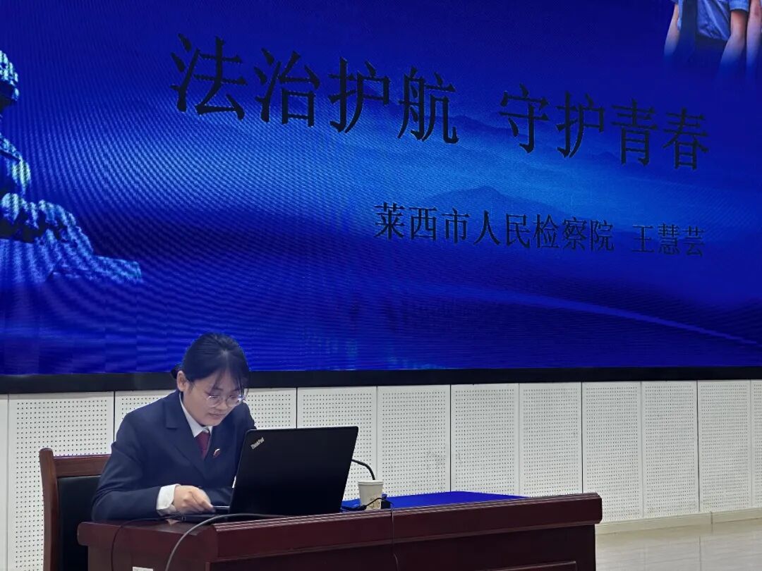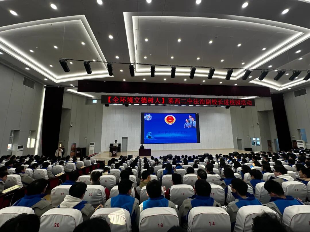 为深入弘扬宪法精神,强化未成年人法治教育、筑牢校园安全防线,12月15日,莱西市人民检察院干警王慧芸走进莱西市第二中学,开展了以防诈、反欺凌为主题的普法宣讲活动。
