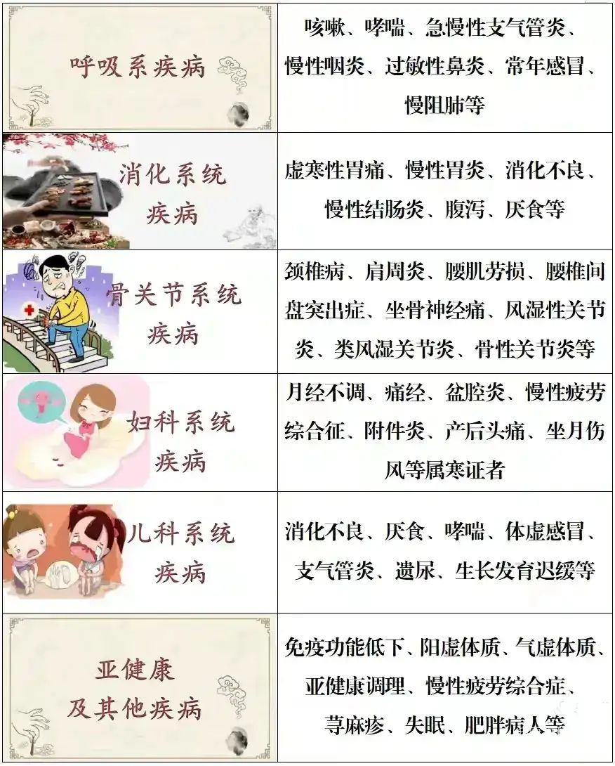 一、贴敷原理:基于“天人相应”理论,通过辛温中药贴敷穴位,温阳益气、祛风散寒、疏通经络,提升机体抗病能力,预防治疗慢性虚寒性疾病。