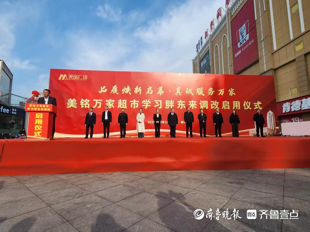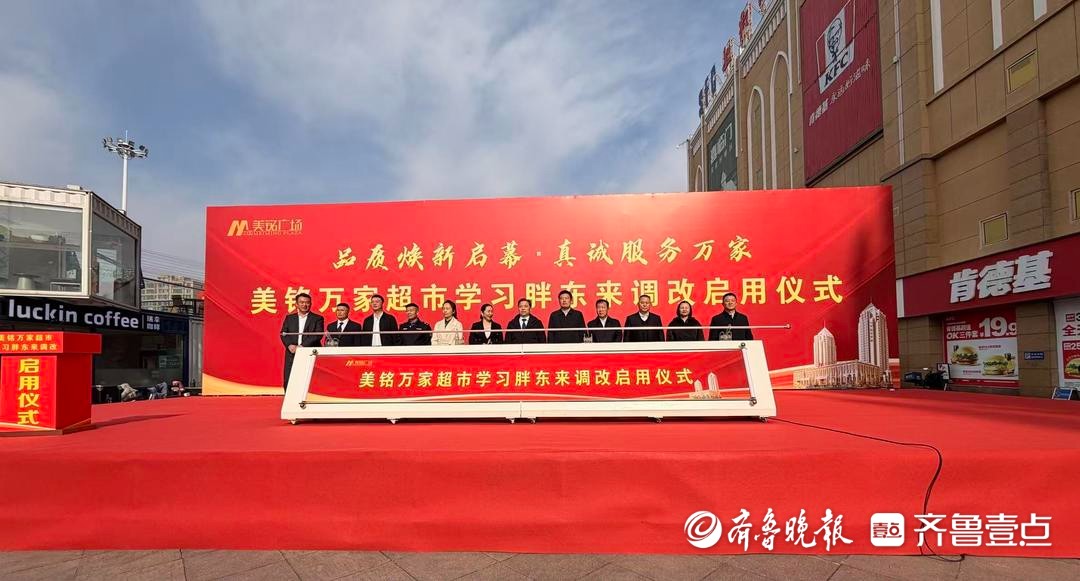 仪式在龙泉街道党工委书记党琪的主持下拉开帷幕。山东美铭集团董事长王志强首先介绍了超市调改情况。他表示,此次调改是美铭万家以胖东来为标杆,全面学习其经营理念、服务标准与管理模式,从商品陈列、环境优化到服务流程、售后保障进行系统升级,旨在回归零售本质,为市民提供更优质的商品、更暖心的服务、更舒心的购物环境。他承诺,将把“真诚待人、用心服务”的精神融入运营细节,坚守诚信经营,持续提升服务品质,打造有温度的本土超市品牌。