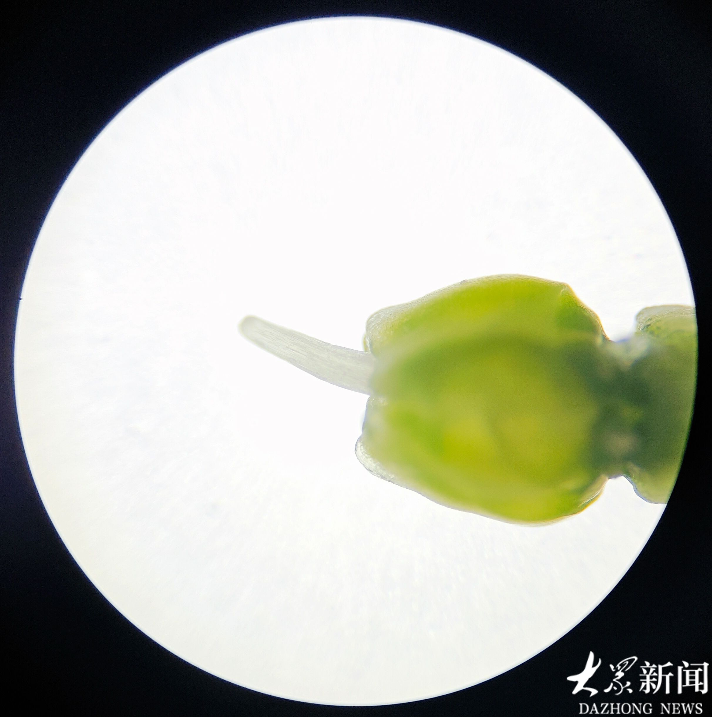 山东省农业科学院(金乡)大蒜产业技术研究院技术人员用电子显微镜观察金蒜10号柱头情况,用于杂交育种实验。