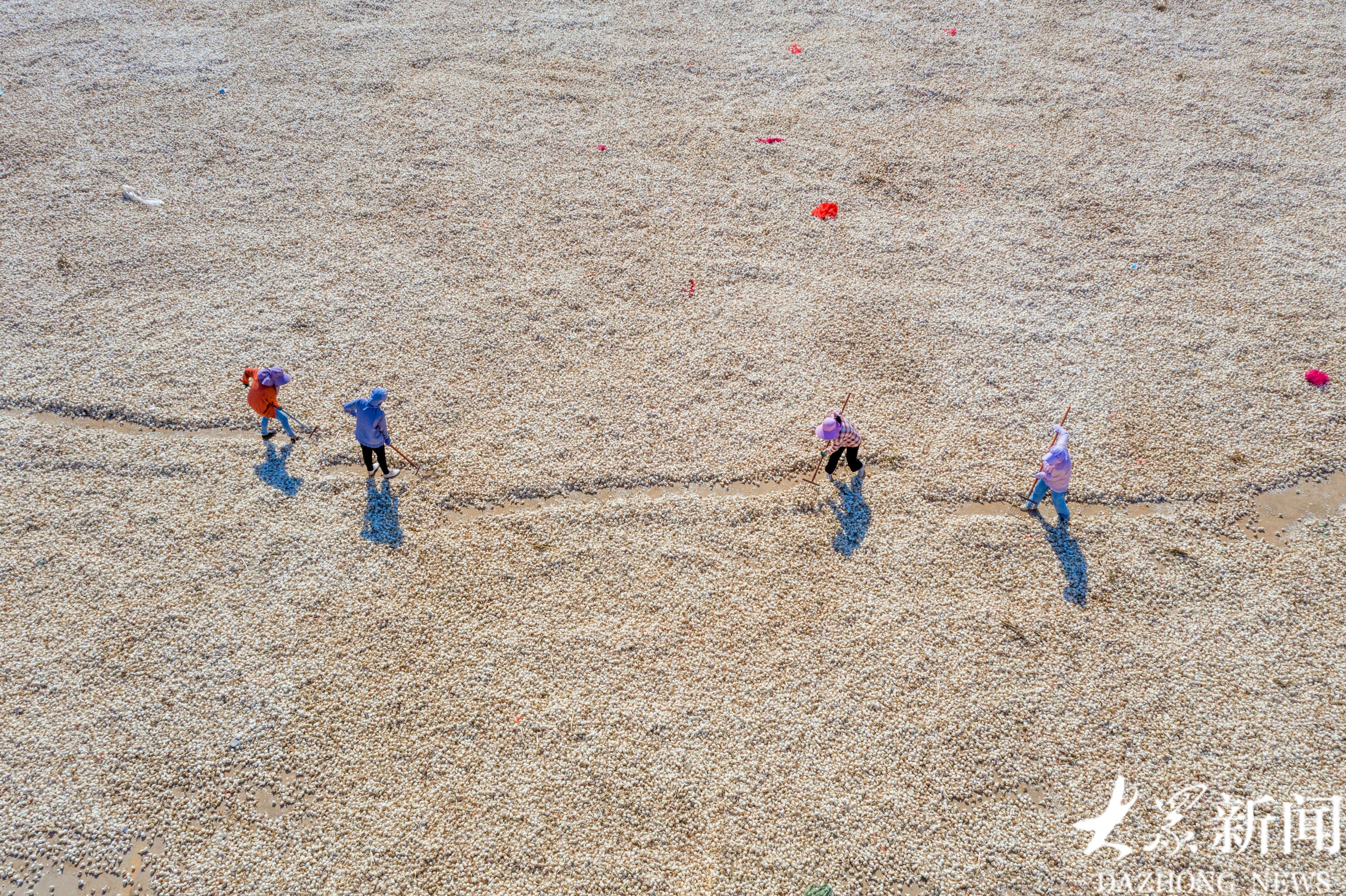 在金乡县,工人将刚收获的大蒜进行晾晒。(方建兵 摄)