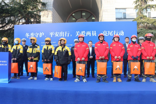 为积极应对冬季复杂道路交通环境,切实保障快递、外卖行业从业人员出行安全,有效预防和减少道路交通事故,12月15日,“冬季守护、平安出行,关爱两员、亮尾行动”主题活动在省公安厅交通管理局正式启动。活动由山东省公安厅主办,中国平安财产保险股份有限公司山东分公司(以下简称“平安产险山东分公司”)承办,省委宣传部、省委社会工作部、省市场监管局(快递外卖行业党委)、省道路交通安全协会、省邮政速递物流有限公司等单位共同协办,驻鲁主要快递、外卖企业参与活动。