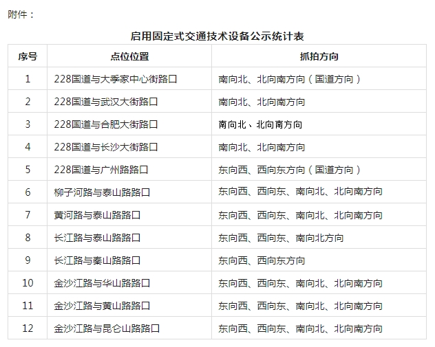 现对以下设备予以公示,自2026年1月1日起,将对有关交通违法行为进行依法管理,请广大交通参与者自觉遵守道路交通法律法规,共同维护良好的道路交通环境。