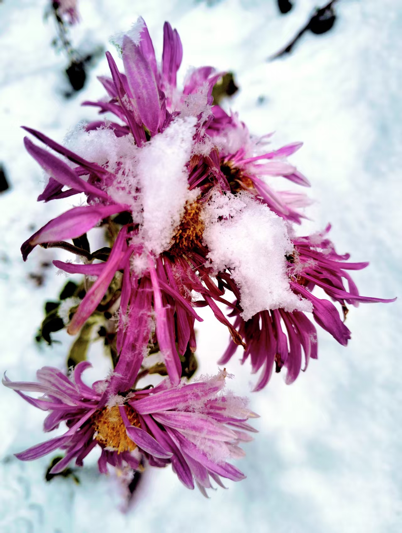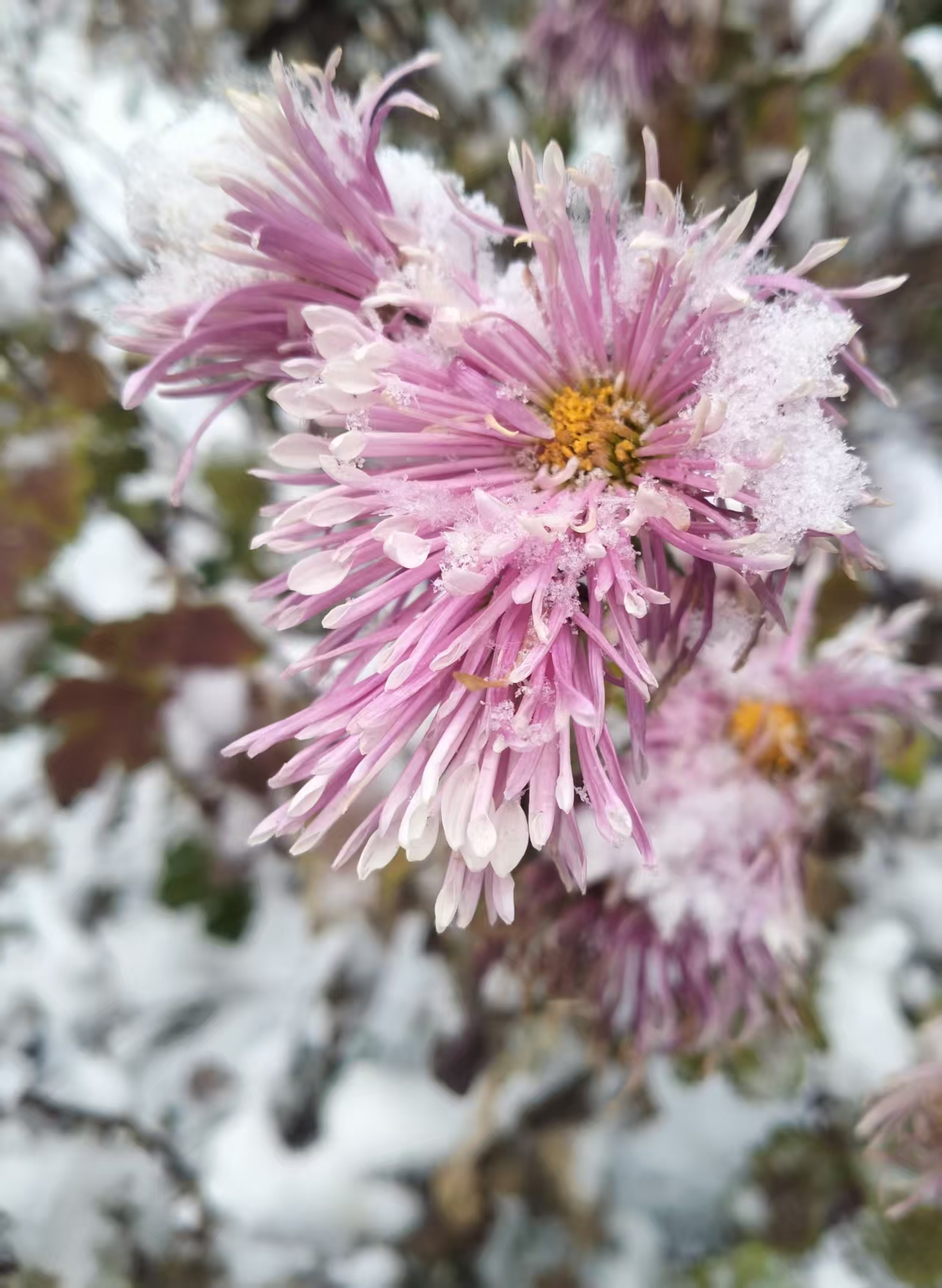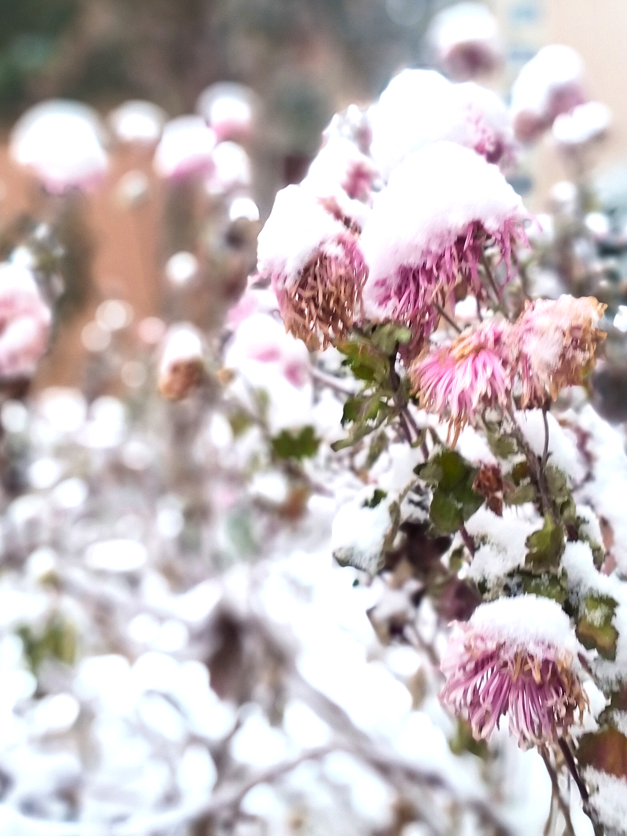 冬季,漫步在风雪后的小城安丘,角角落落里总有一些东西值得我们驻足甚至感动,还有那样一些花儿,并不是只有梅花凌寒,冰天雪地里,那些菊花、月季等等的花儿,还顽强地立着,顶风冒雪,倔强地站着最后一班岗,挺立起冬天另一类风骨的存在。