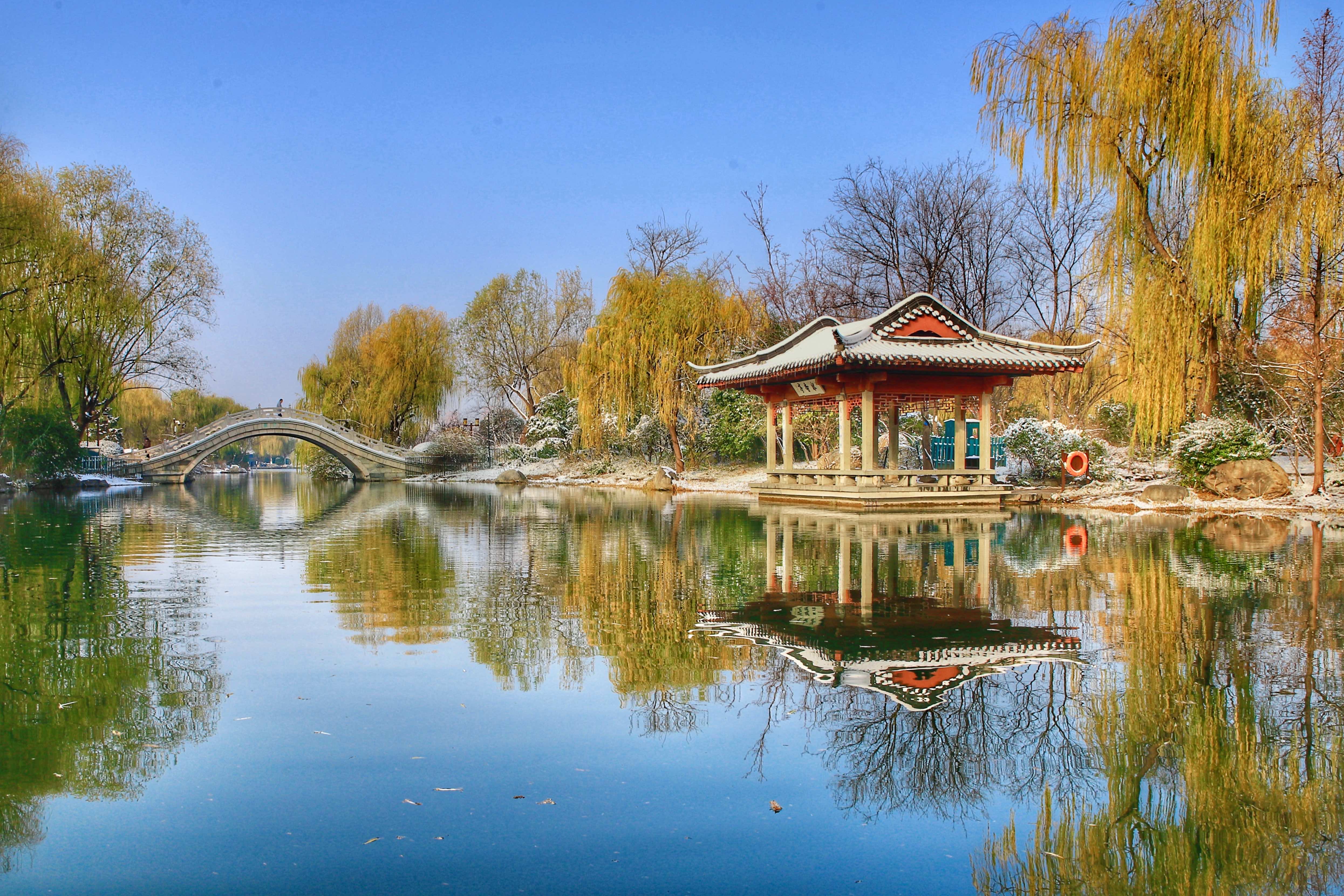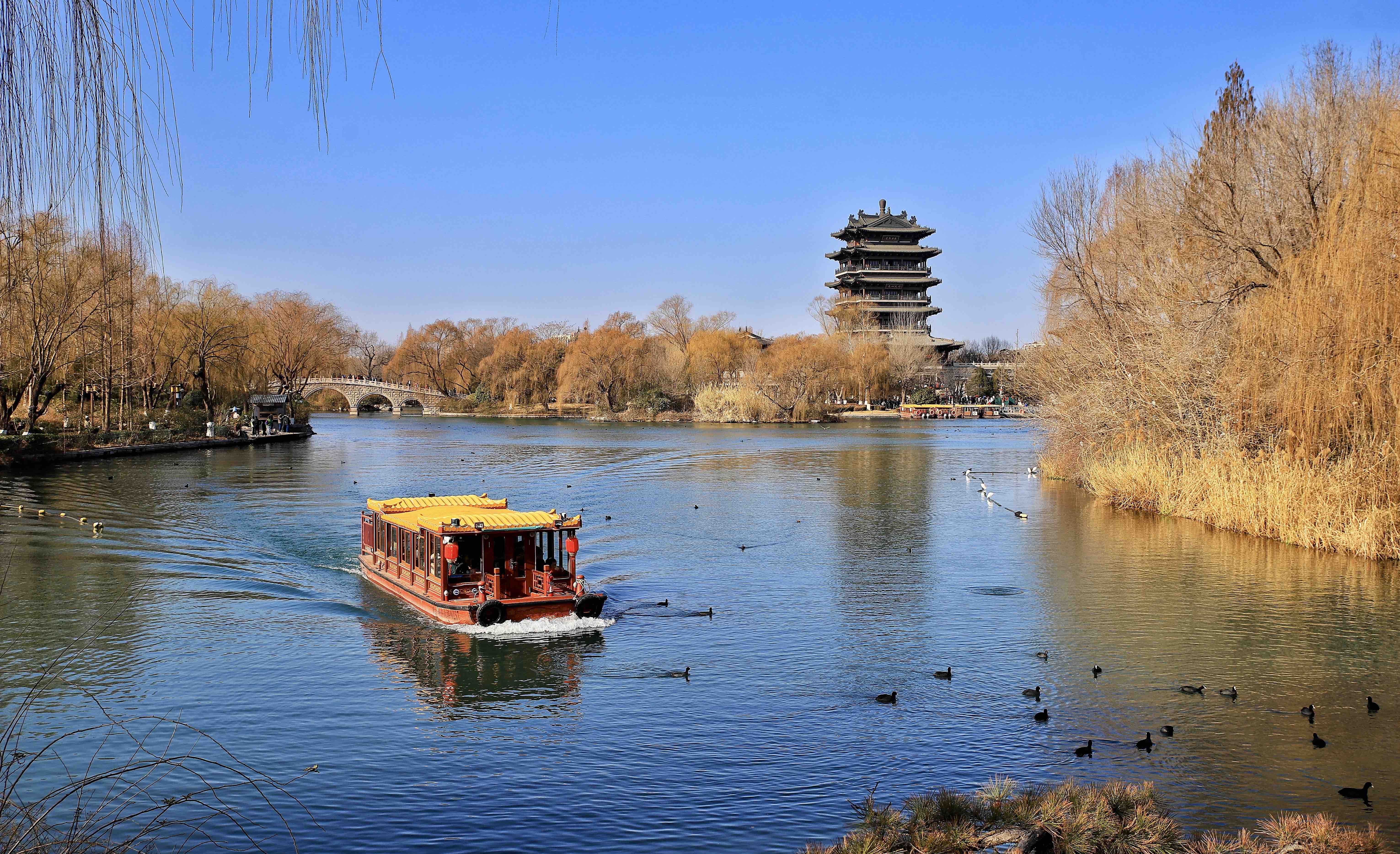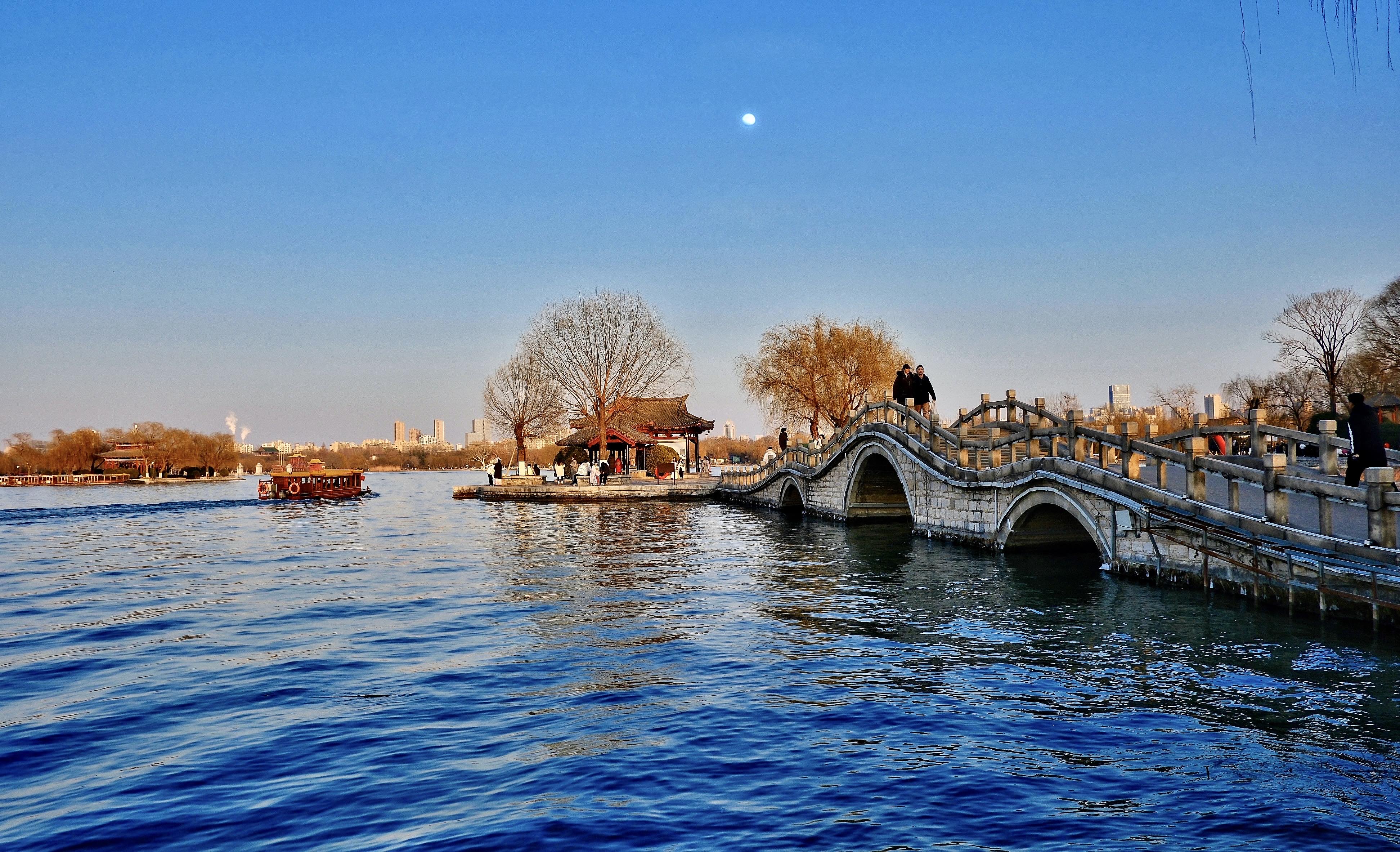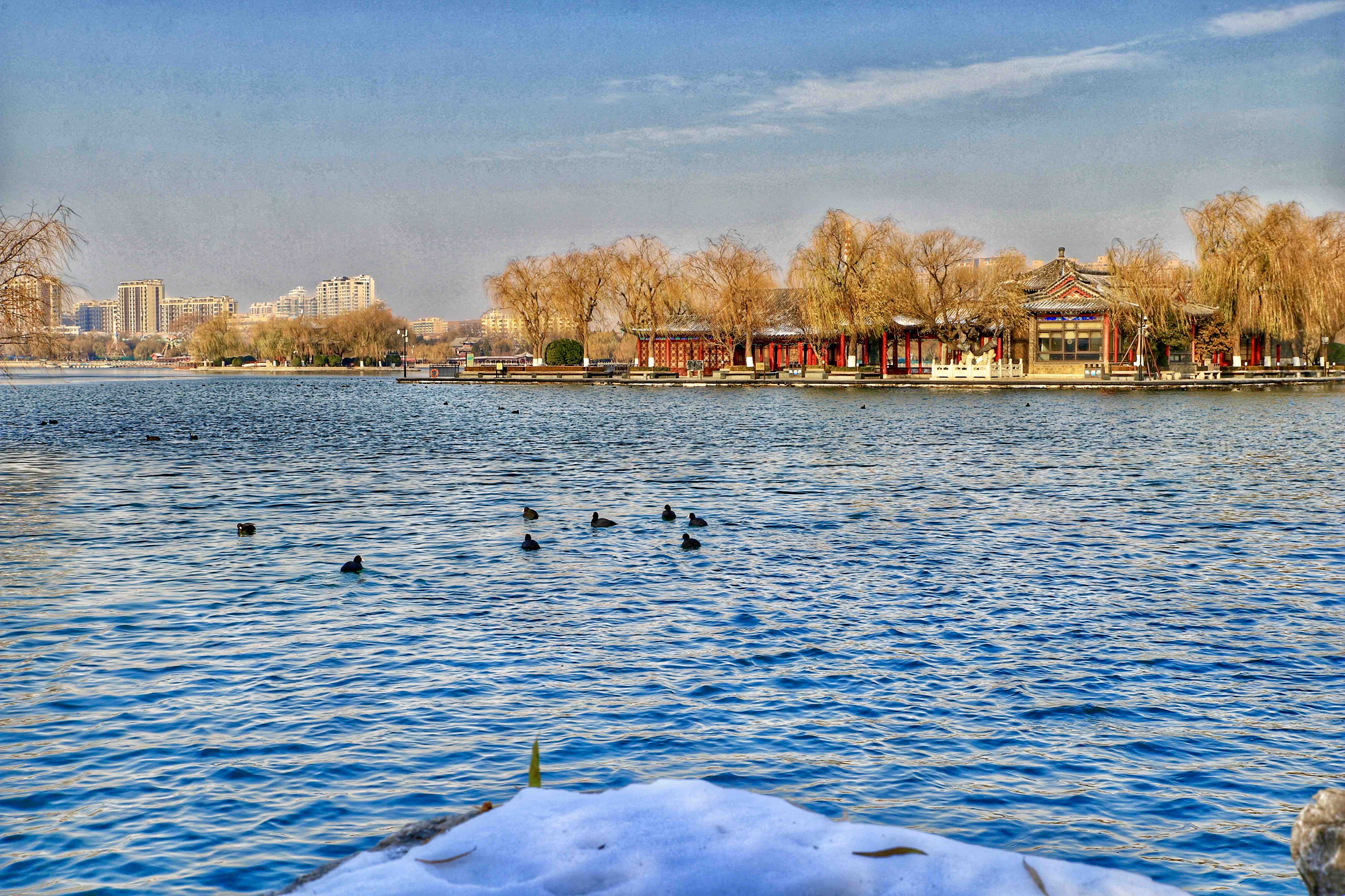 冬日大明湖,敛去喧嚣,归于沉静。本组作品从开阔湖景到游船飞鸟,从桥亭相映到雪后倒影,捕捉明湖冬日的静谧景致与自然生机,传递济南大明湖冬日的独特韵味。