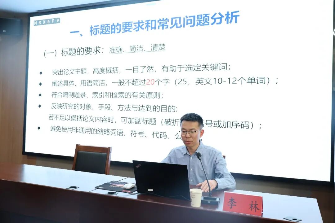 《滨州医学院学报》编辑部主任李林以 “期刊论文写作问题实例分析” 为主题,通过九大核心模块,系统讲解了期刊论文写作的规范要求与常见问题。并结合大量真实案例,深入剖析了标题冗余、关键词不规范、摘要要素缺失、结果呈现混乱等典型问题,并给出了针对性的修改建议,强调论文写作需注重准确性、简洁性与规范性,为参会人员厘清了论文写作的思路与要点。
