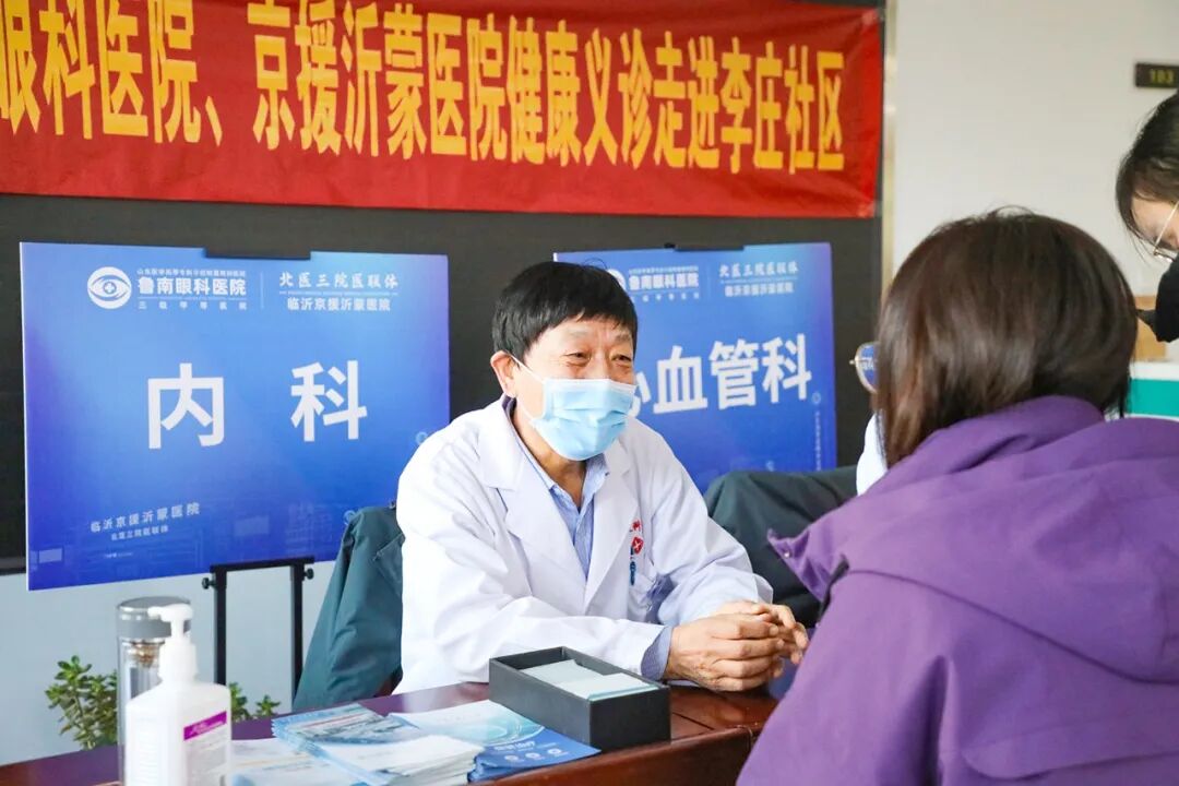 12月18日,在兰山商城管委会统筹组织下,鲁南眼科医院、京援沂蒙医院联合组建多学科义诊团队,走进李庄社区开展健康义诊筛查活动。