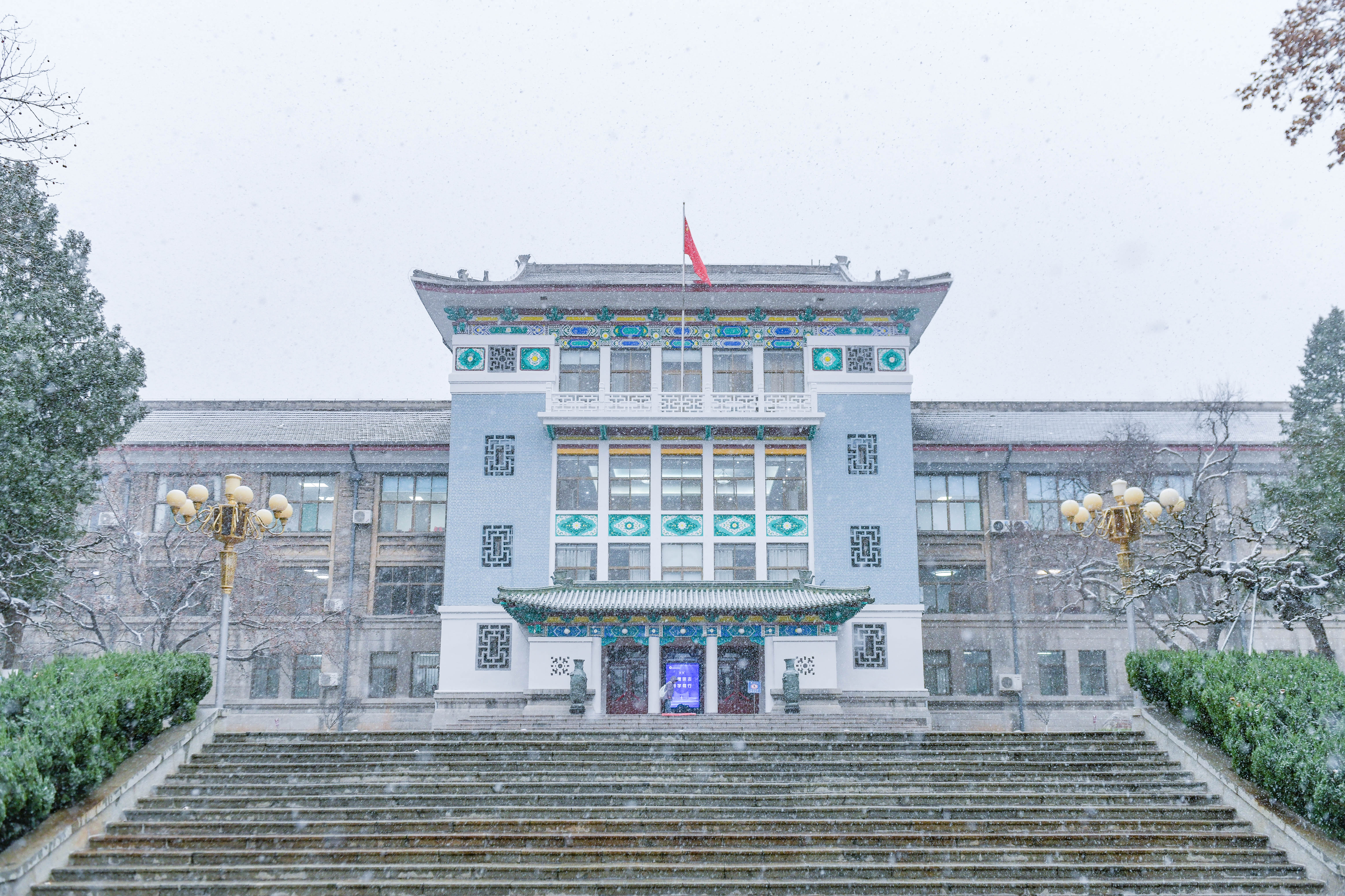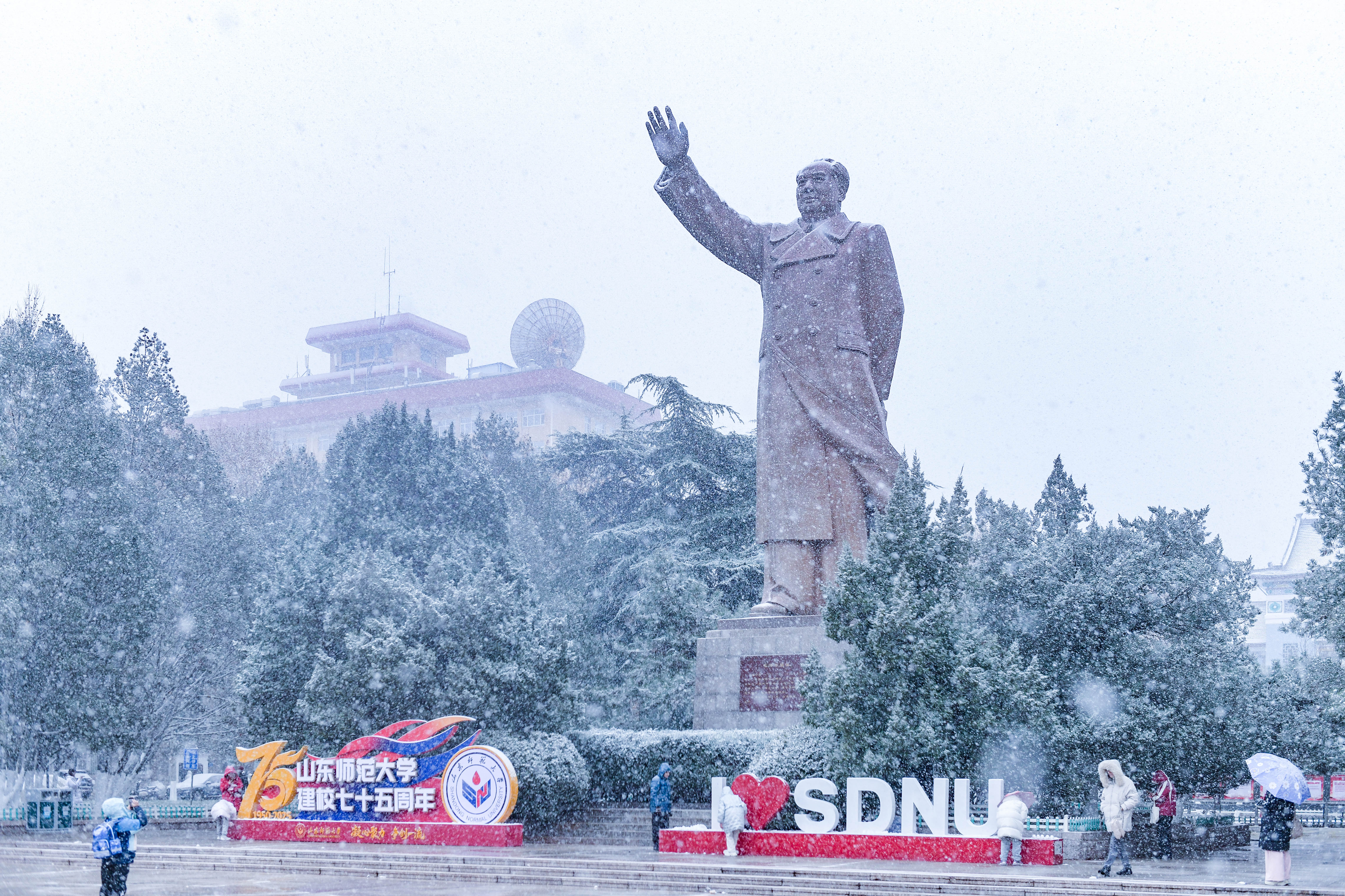 当第一片雪花掠过窗棂,山东师范大学的冬日序章,在12月12日清晨被轻轻掀开——2025年首场初雪,裹着清冽的风,把整个校园晕染成了银装素裹的画卷。雪落无声,最先染白的是学校主楼的飞檐与台阶。蓝灰墙面衬着青绿纹饰,往日庄重的教学楼,此刻多了几分冬日特有的温柔。拾级而上,薄雪覆在石阶纹理里,踩上去咯吱轻响,是独属于山师的初雪絮语。这场初雪,是冬日写给山师的情书,把庄重、生机、希望与静谧,都揉进了校园的每个角落。