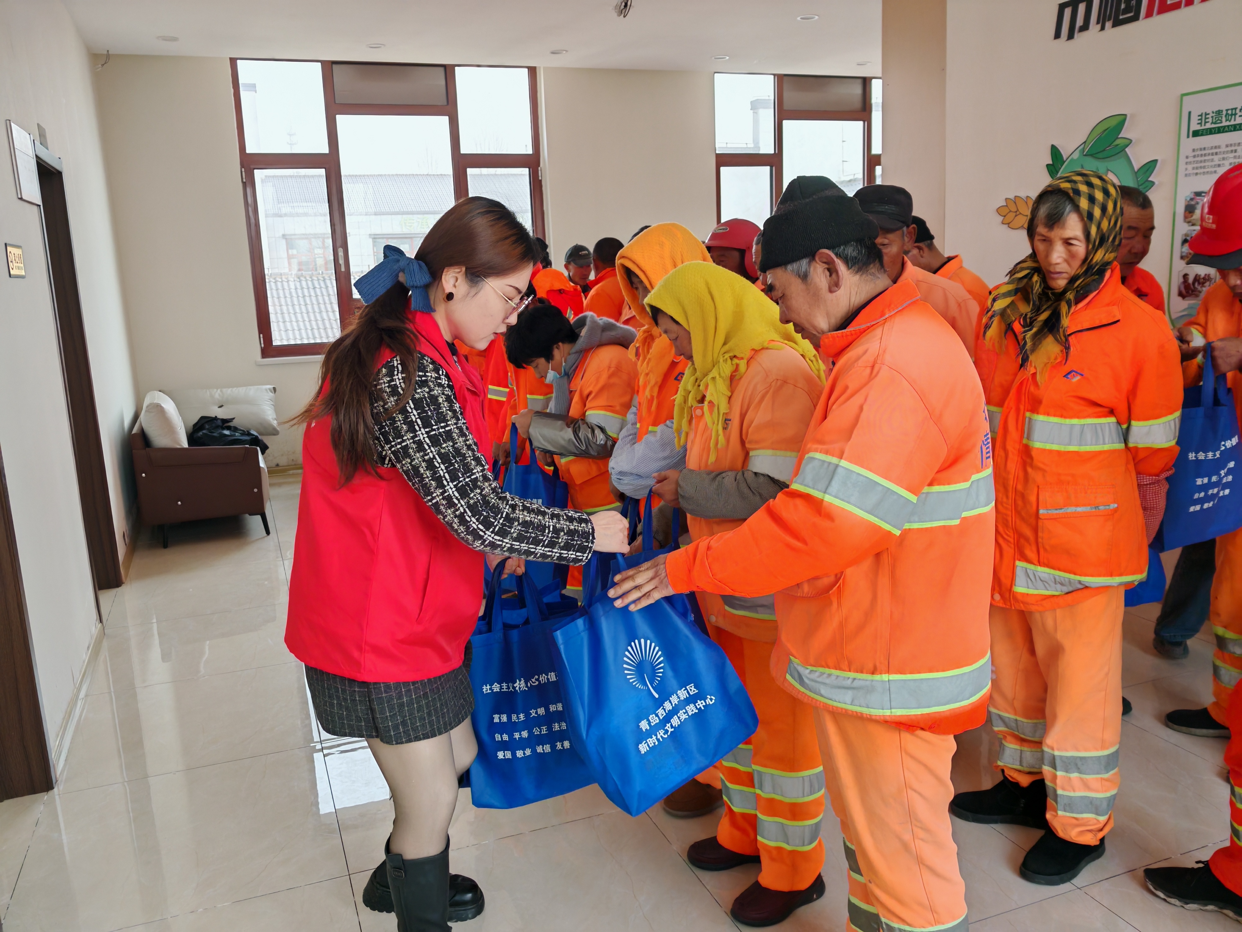 活动现场,海青镇工会还为每一位环卫工人准备了暖心大礼包,里面装着实用生活物品,让大家在寒冷的冬日里感受到实实在在的关怀。